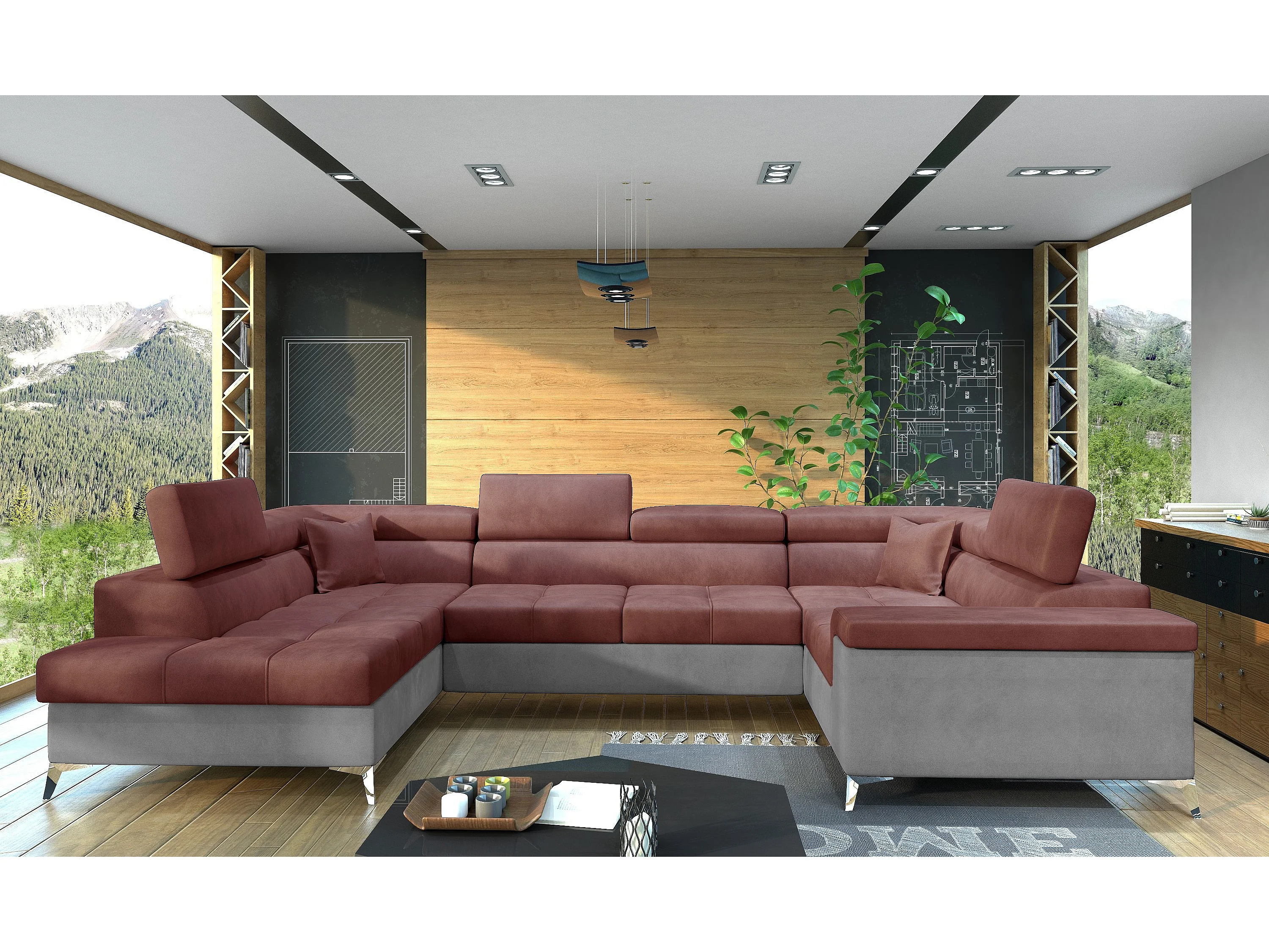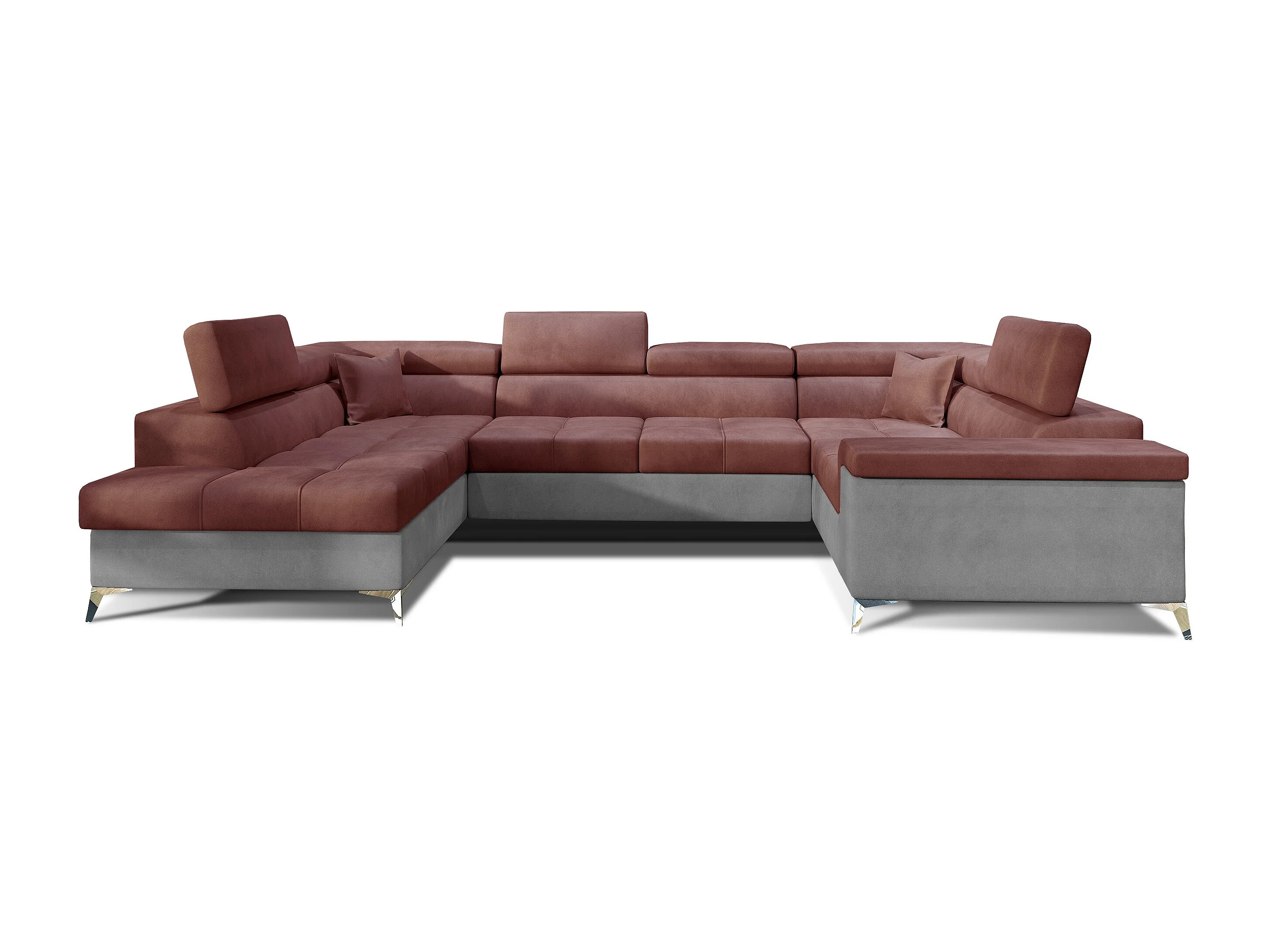 Canapé panoramique convertible TRIANO velours - têtières réglables-Gris clair/Rose cuivré-Coffre à gauche