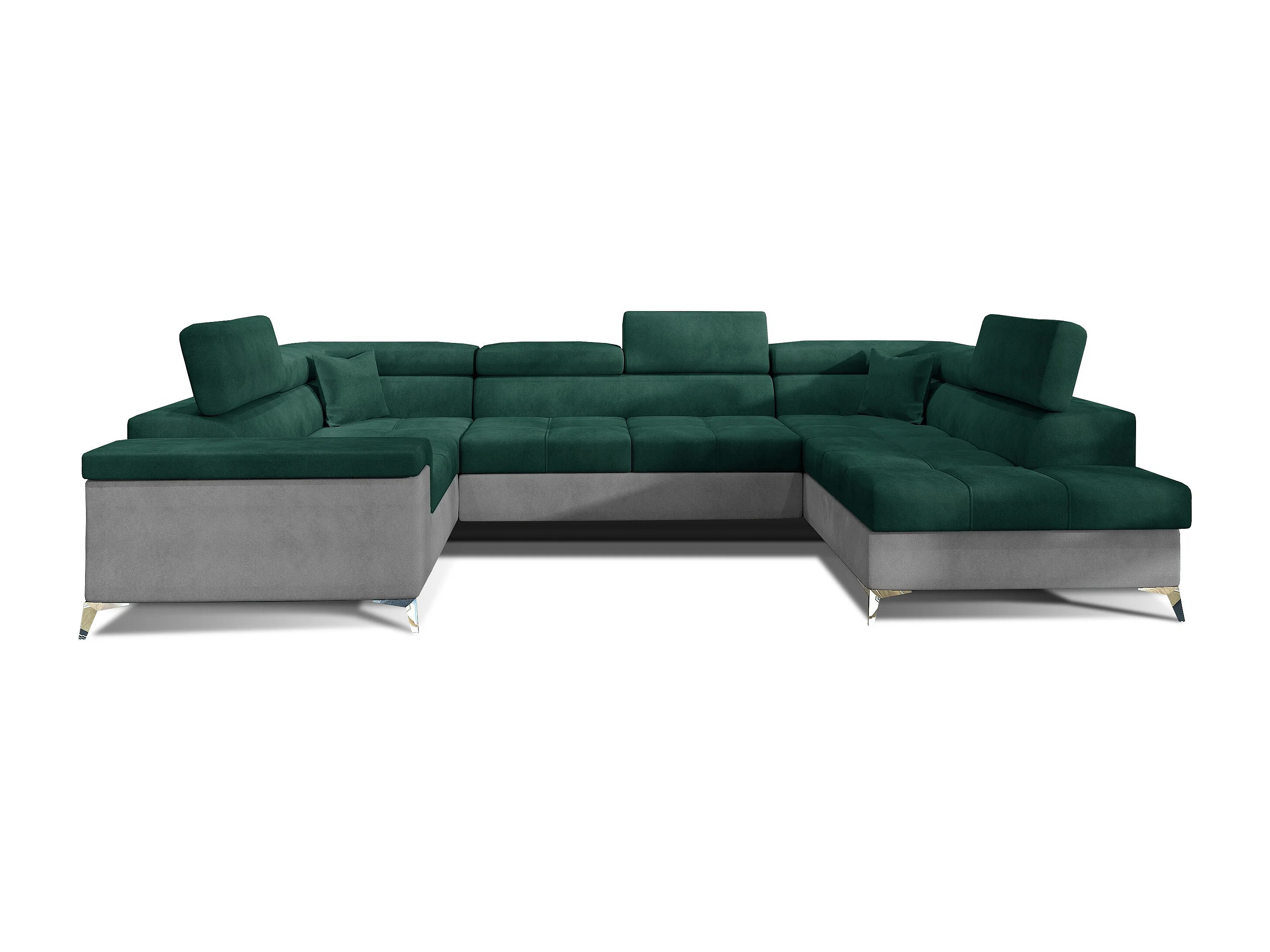 Canapé panoramique convertible TRIANO velours - têtières réglables-Gris clair/Vert-Coffre à droite