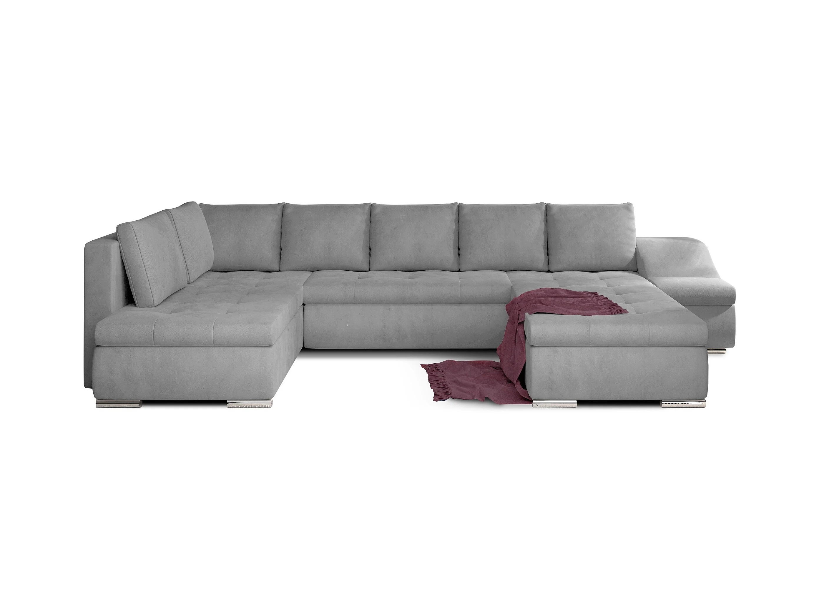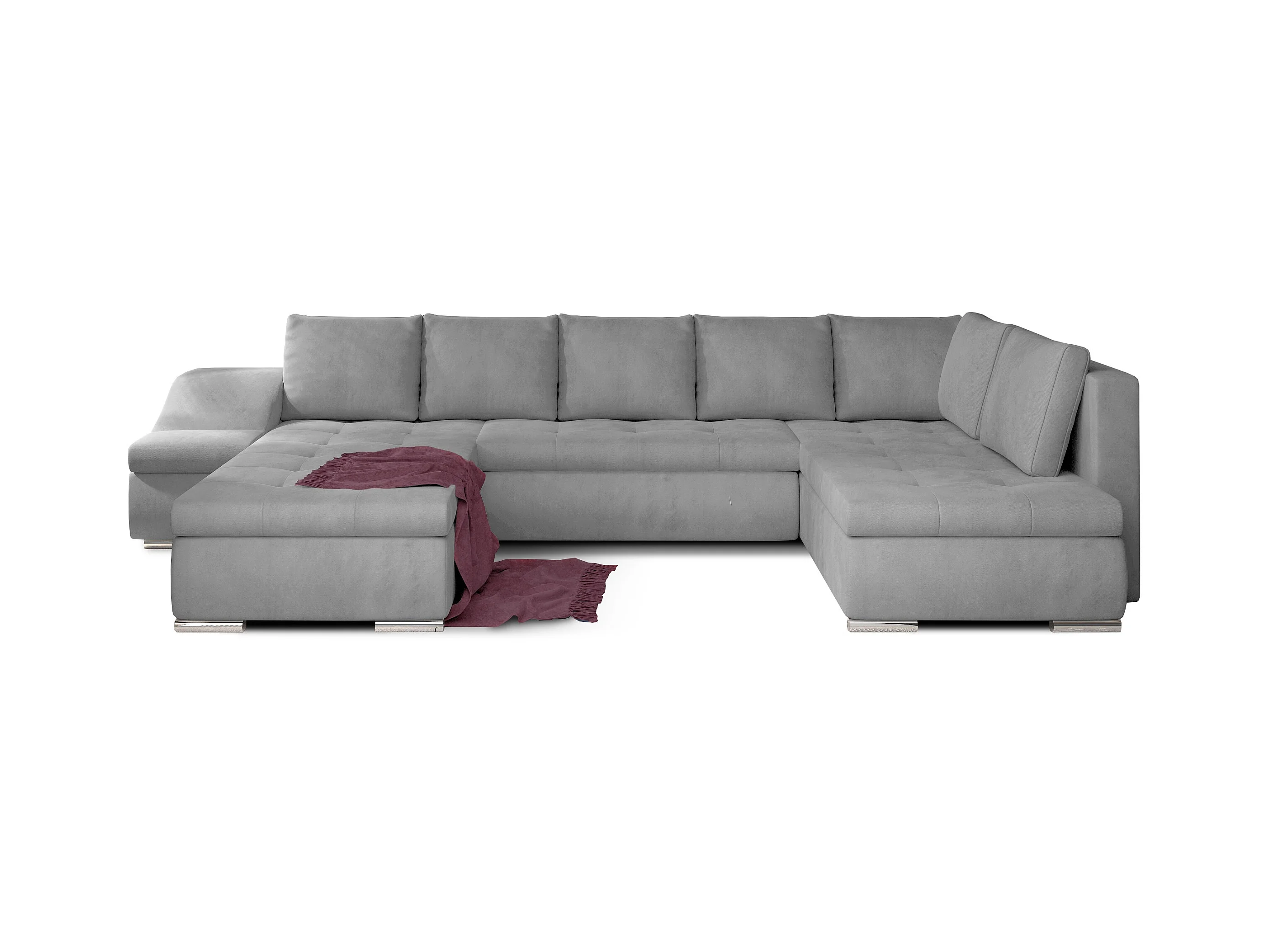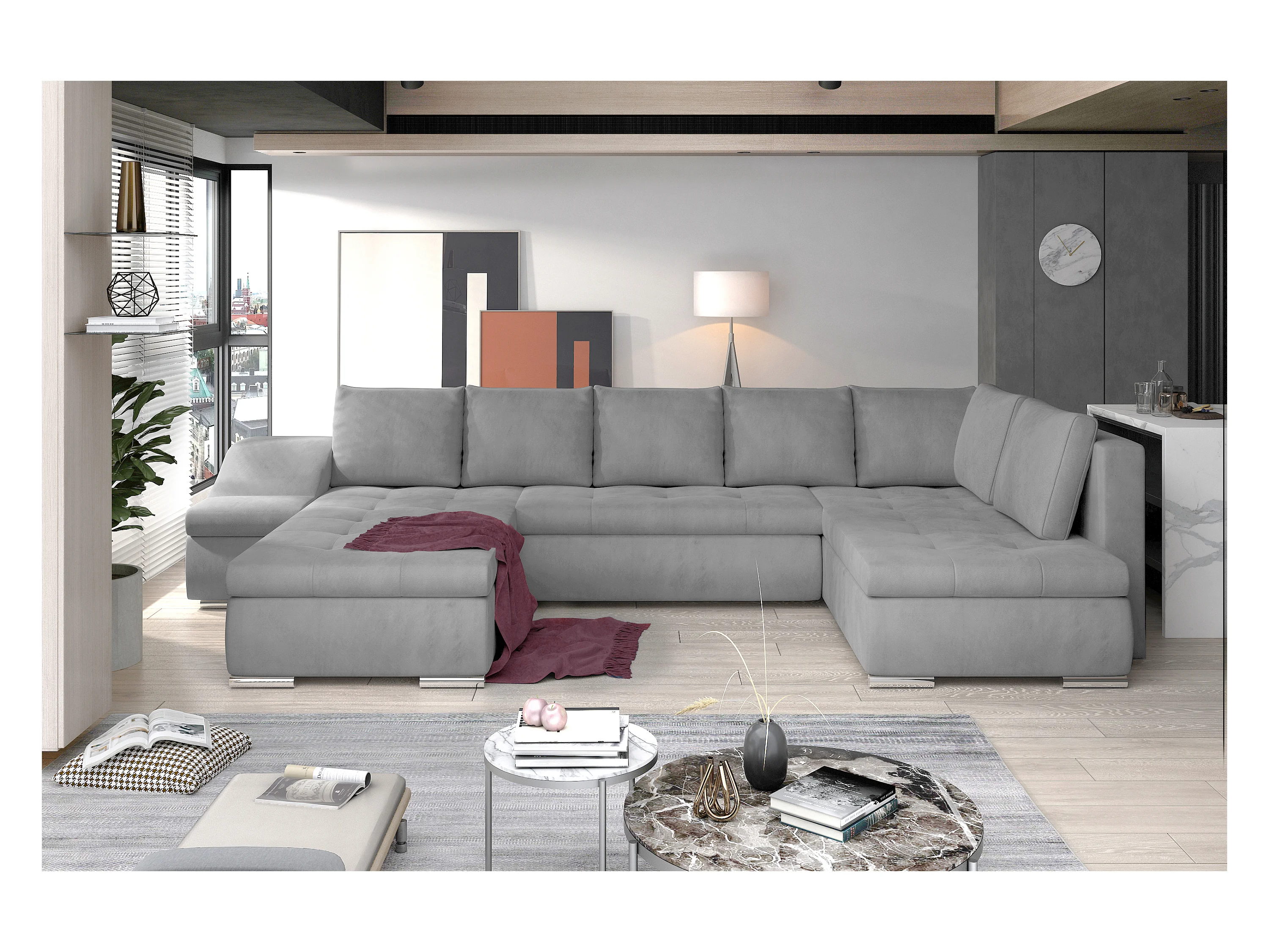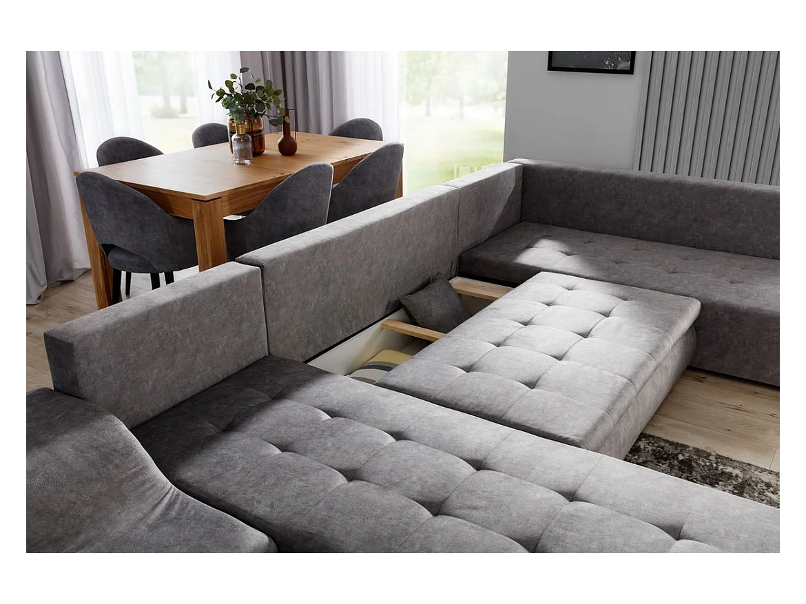 Canapé panoramique convertible velours gris avec coffre de rangement Louve 340cm-Coffre de rangement à droite