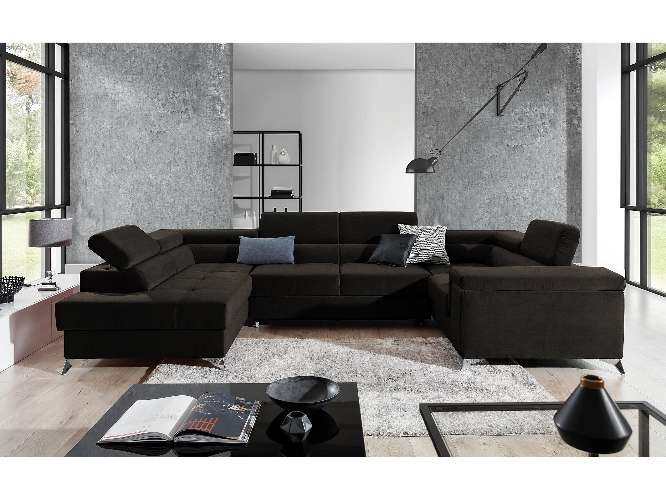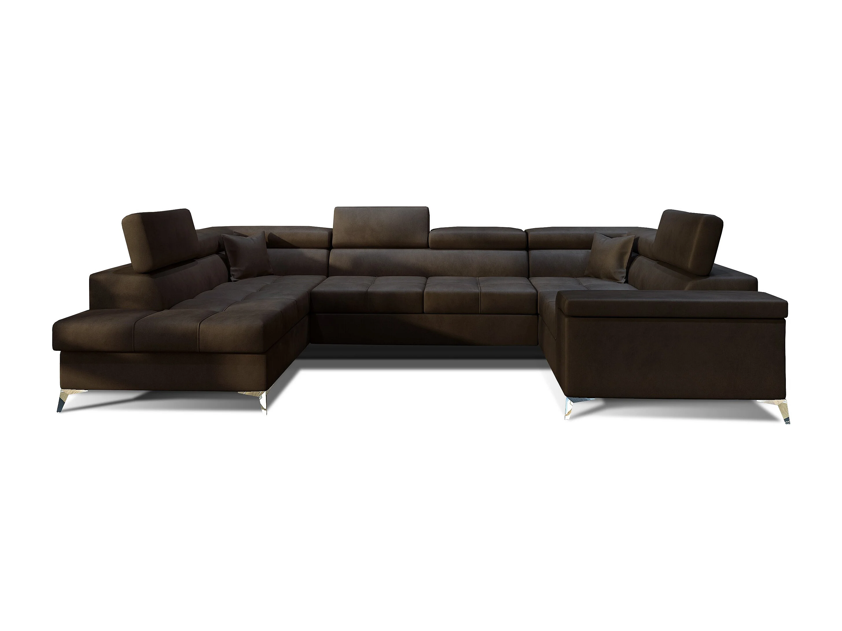 Canapé panoramique convertible TRIANO velours - têtières réglables-Marron-Coffre à gauche