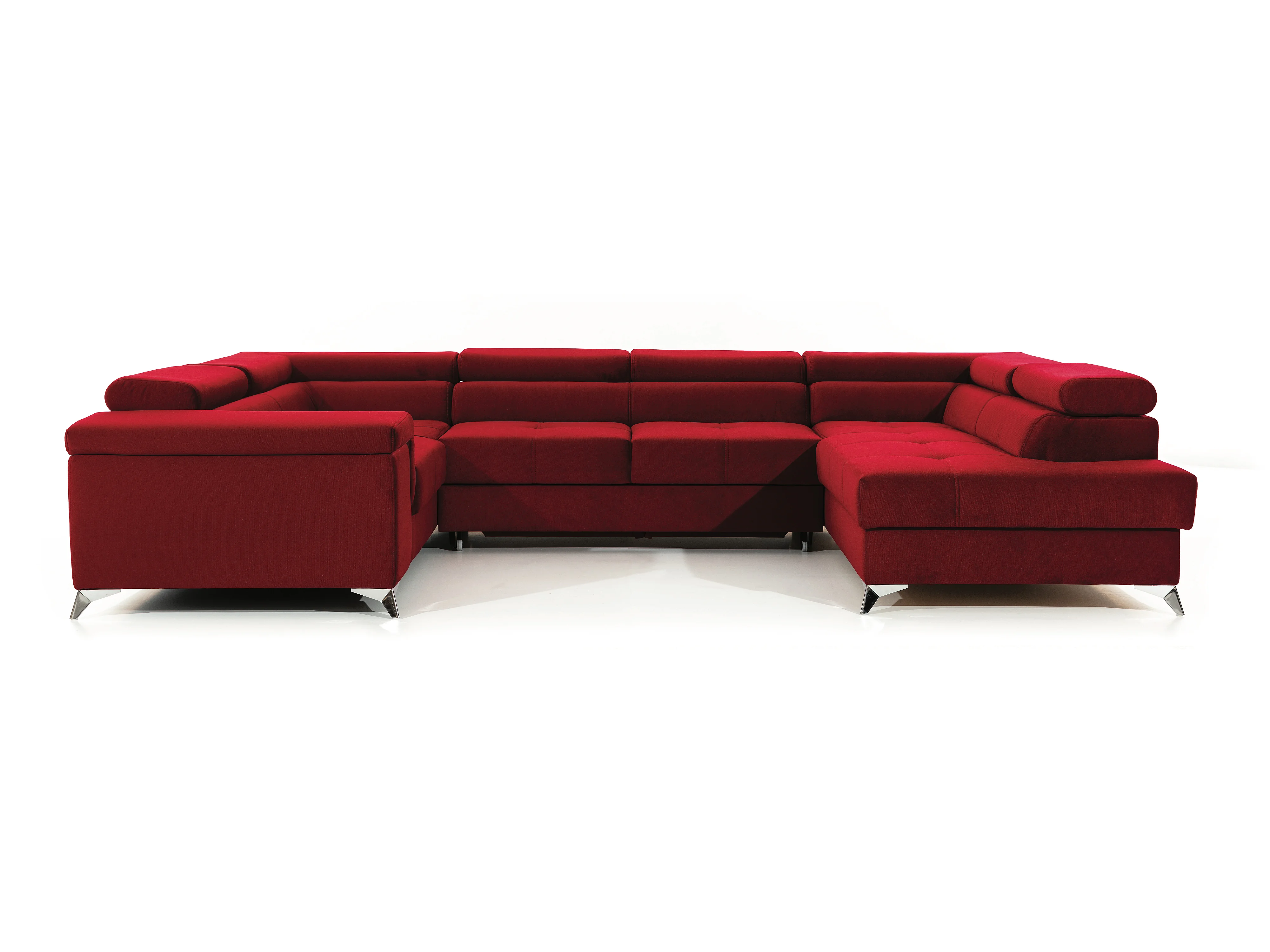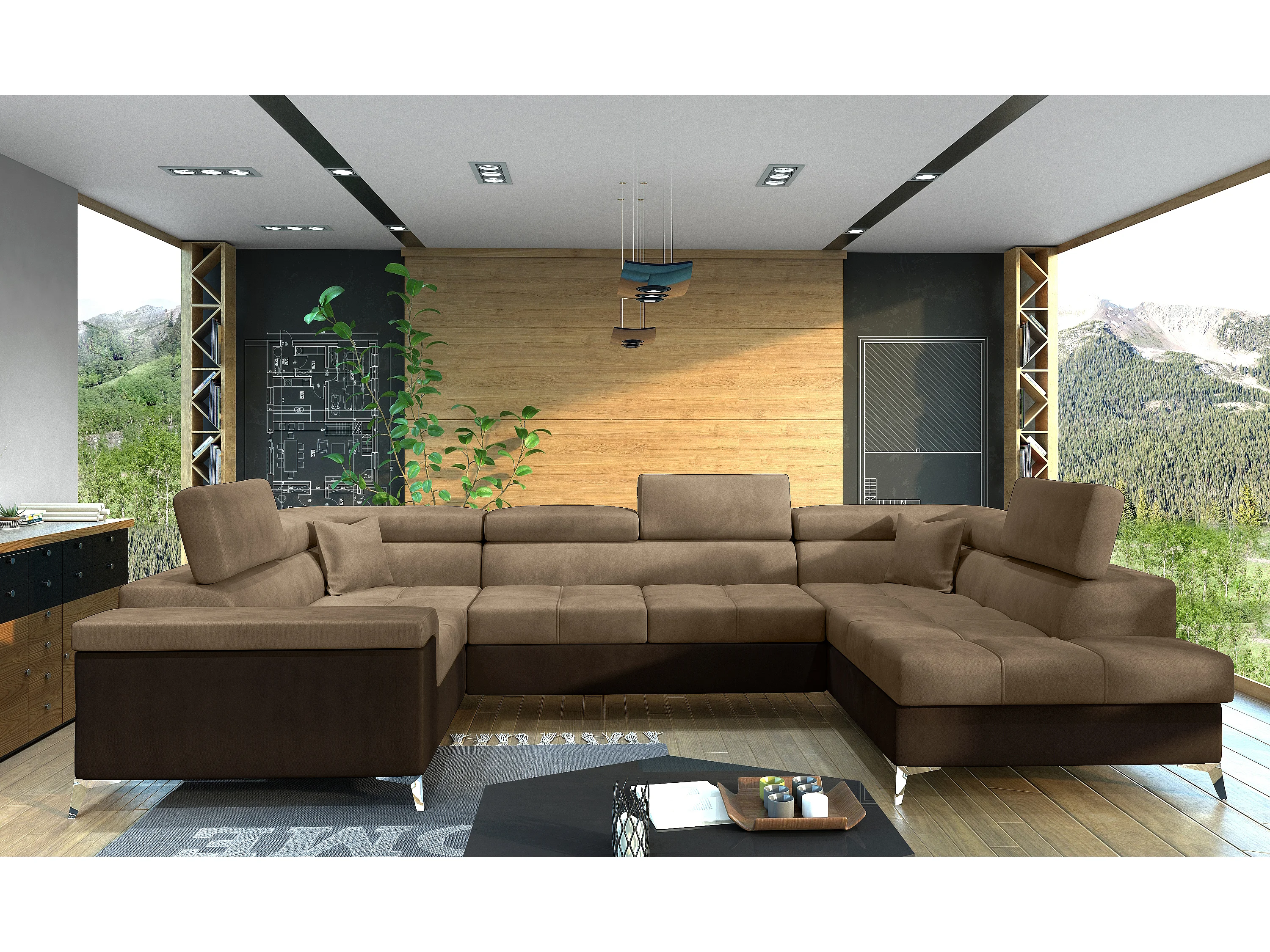 Canapé panoramique convertible TRIANO velours - têtières réglables-Marron foncé/Marron clair-Coffre à droite
