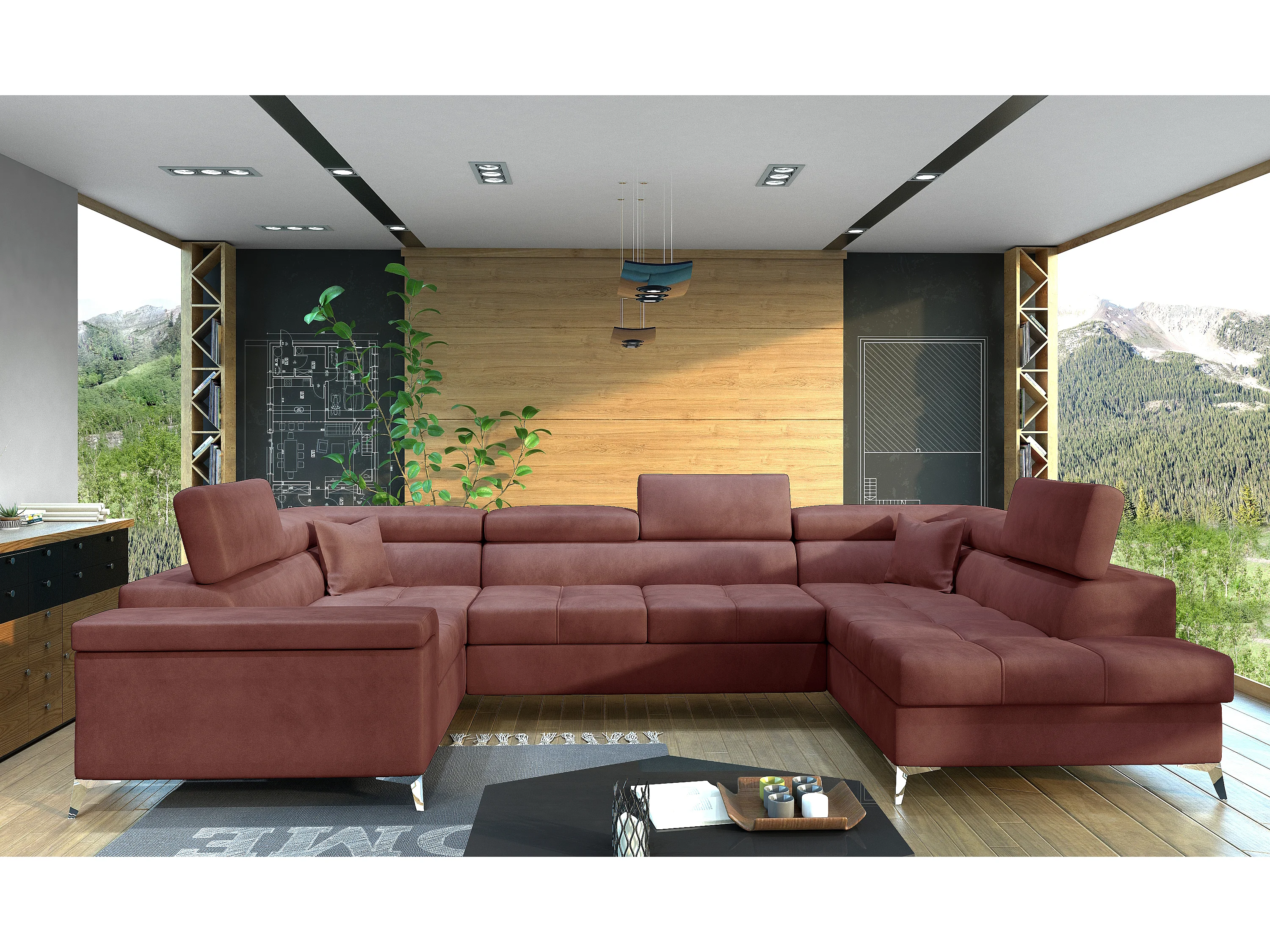 Canapé panoramique convertible TRIANO velours - têtières réglables-Rose cuivré-Coffre à droite