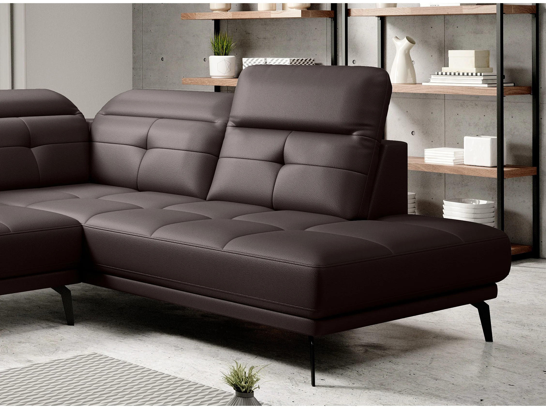 Canapé panoramique moderne simili cuir marron angle droit Versus 350cm