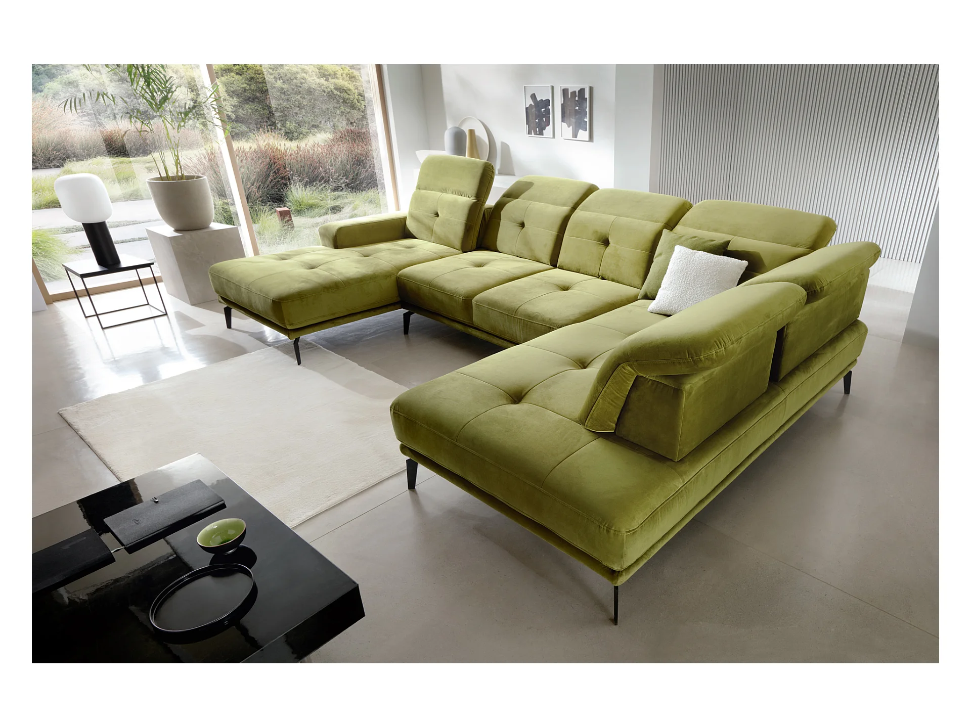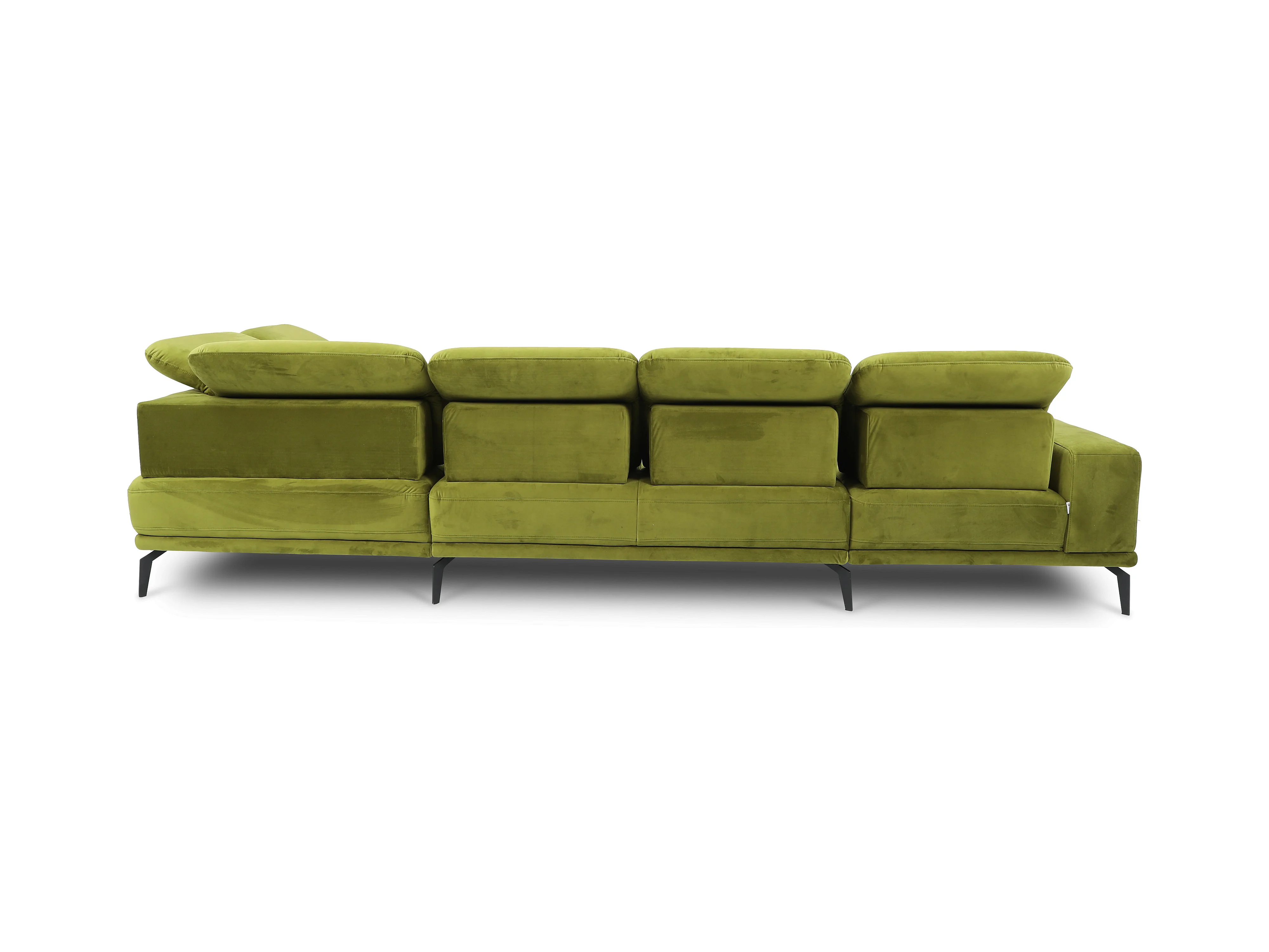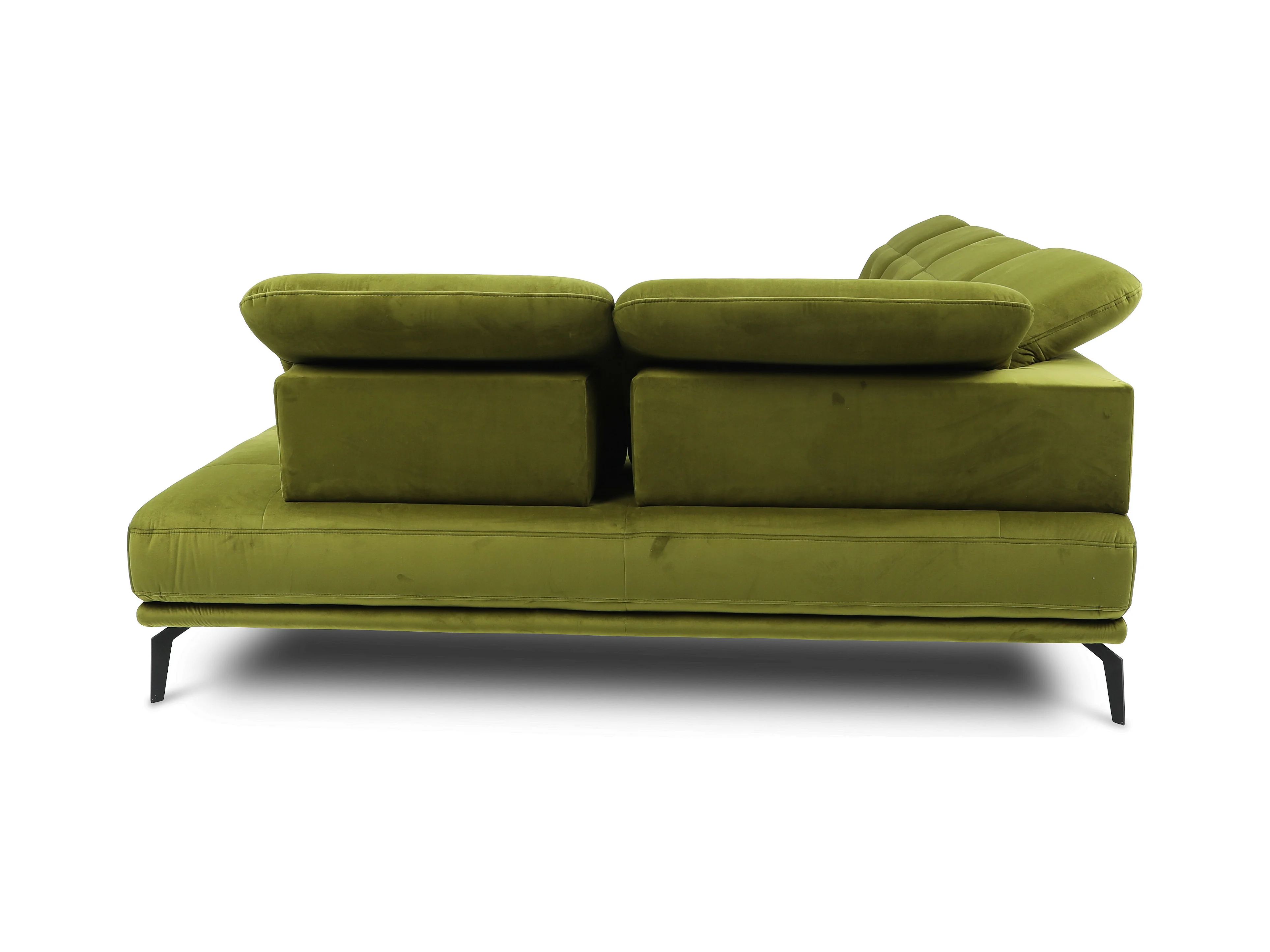 Canapé panoramique moderne velours vert kaki têtières angle gauche Versus 350cm