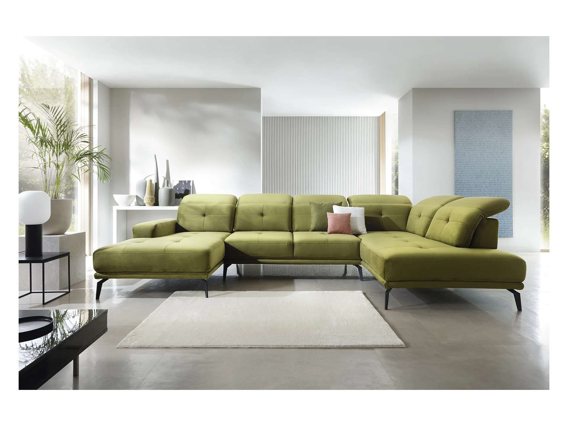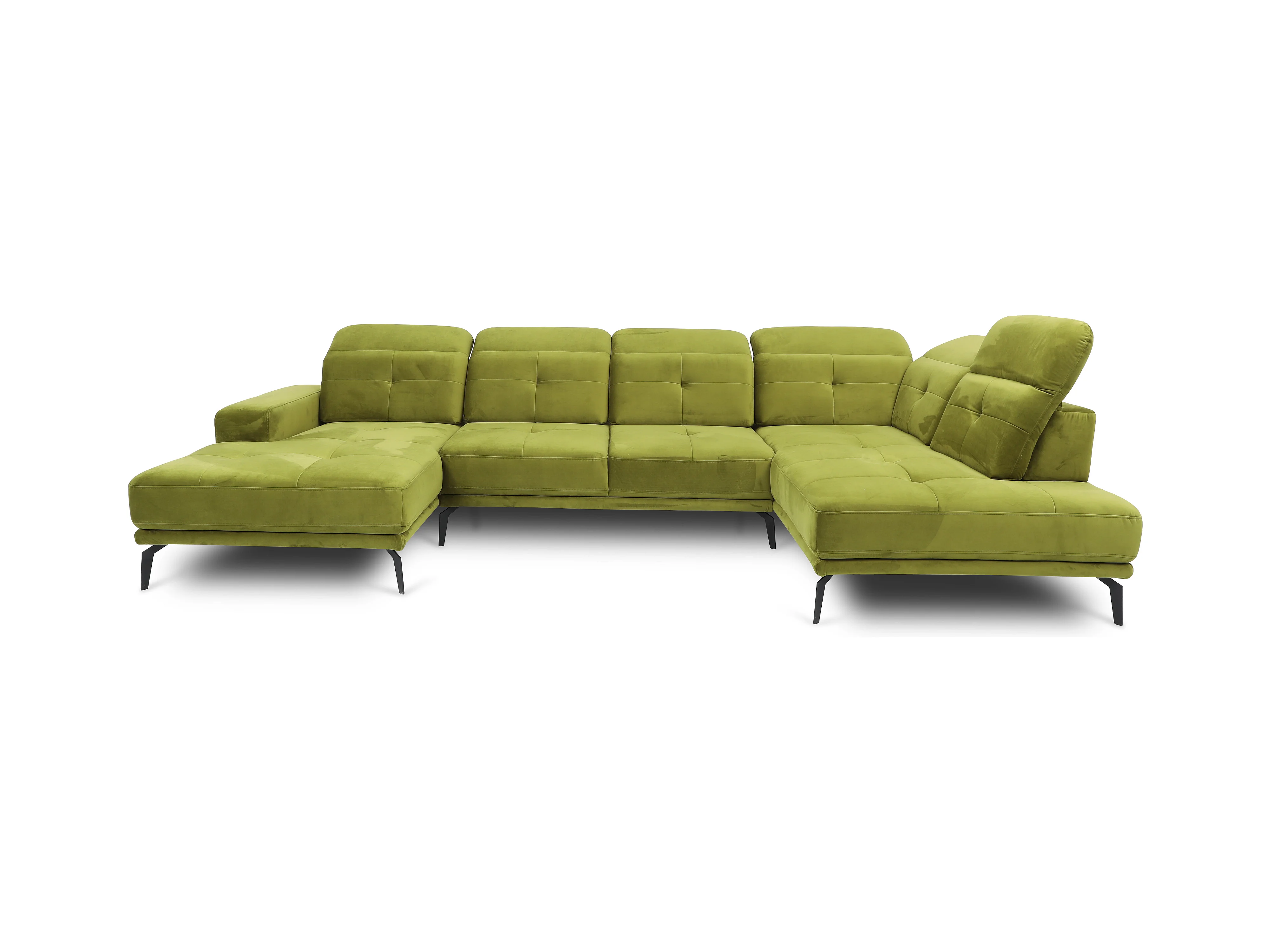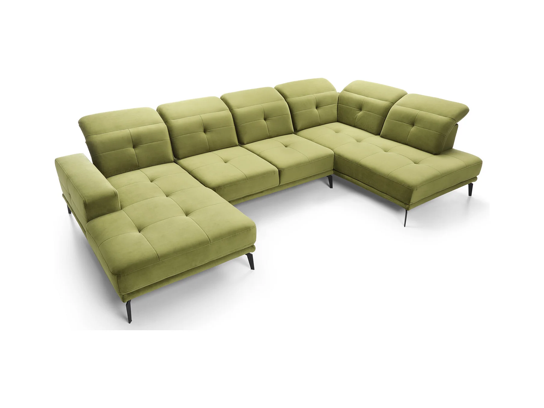 Canapé panoramique moderne velours vert kaki têtières angle gauche Versus 350cm