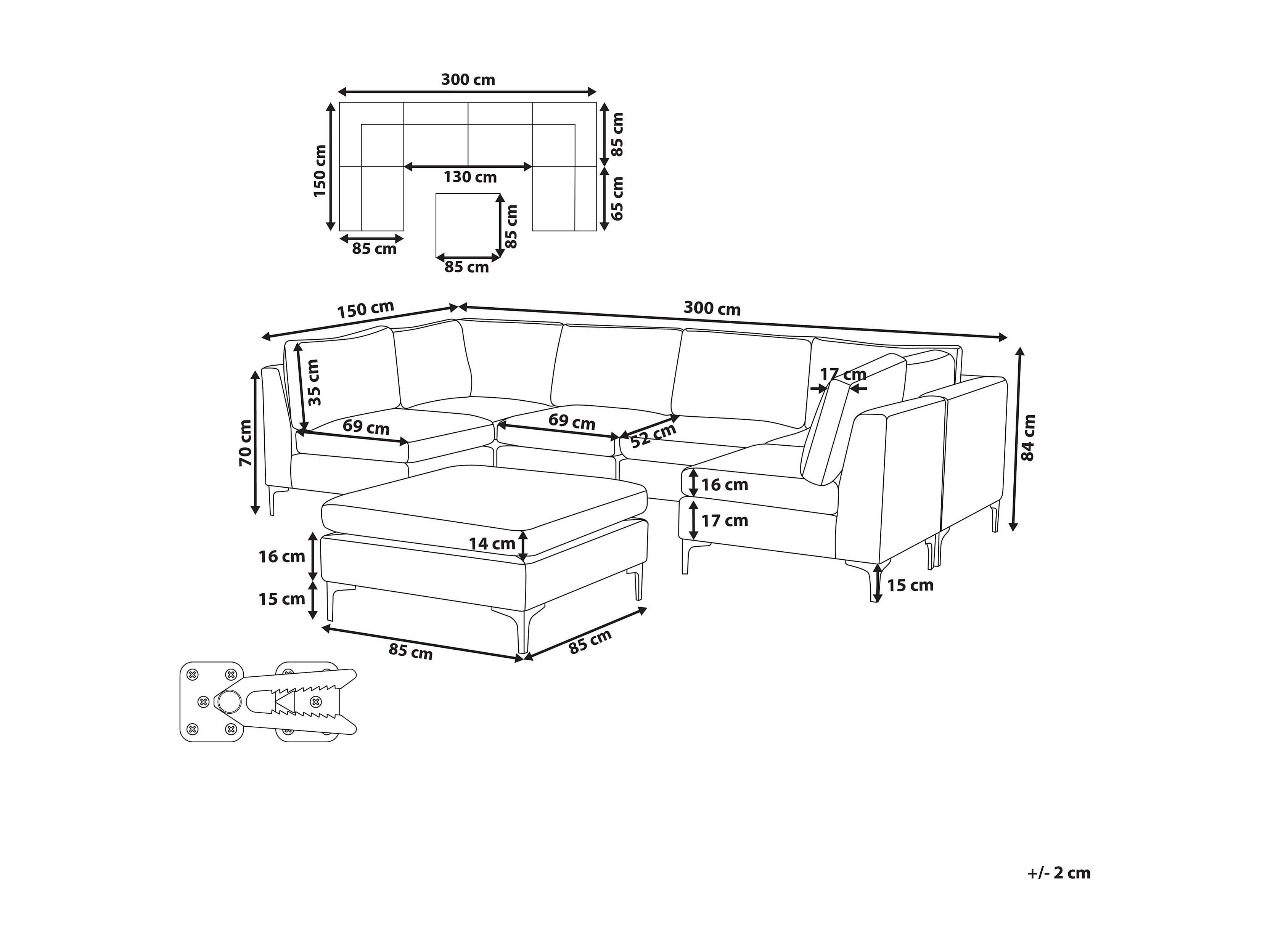 Canapé modulable en forme de U 6 places EVJA Velours Vert avec ottoman