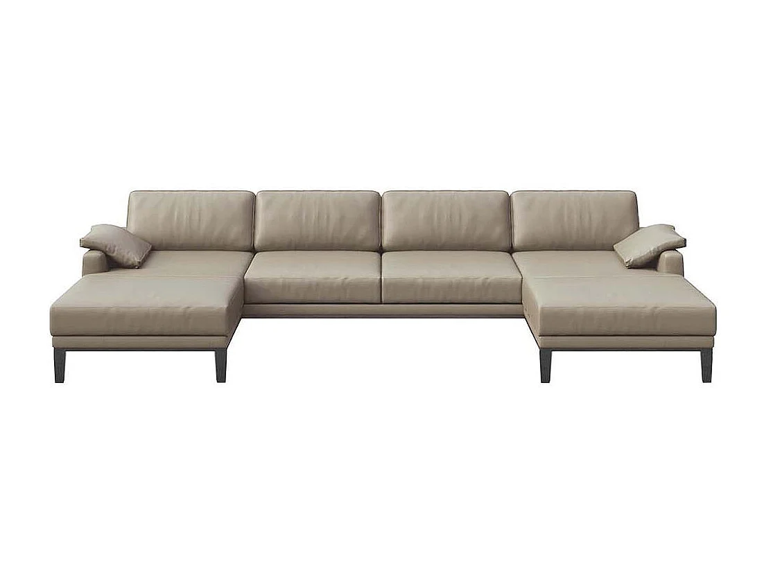 Mesonica Canapé panoramique en cuir naturel gris fossile