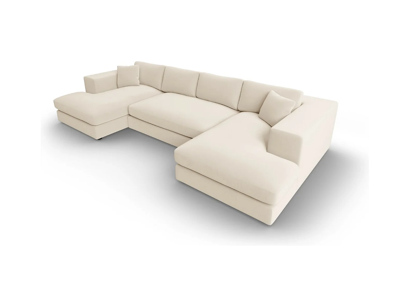 Cosmopolitan Design - Canapé panoramique "Tulum" 5 places en velours beige - 330x156x70cm