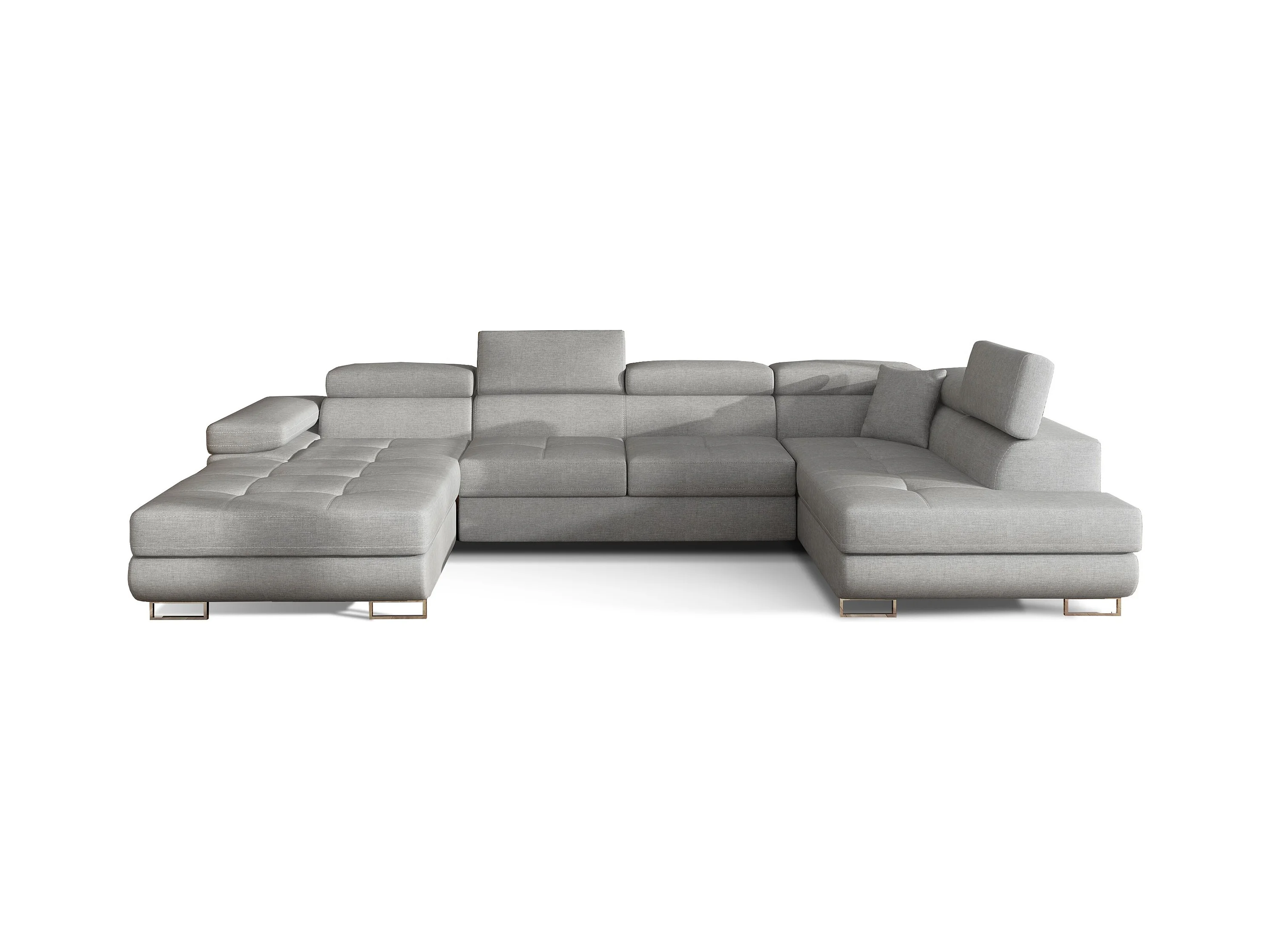 Canapé panoramique tissu gris clair convertible avec coffre de rangement Romano 345cm-Coffre de rangement à gauche