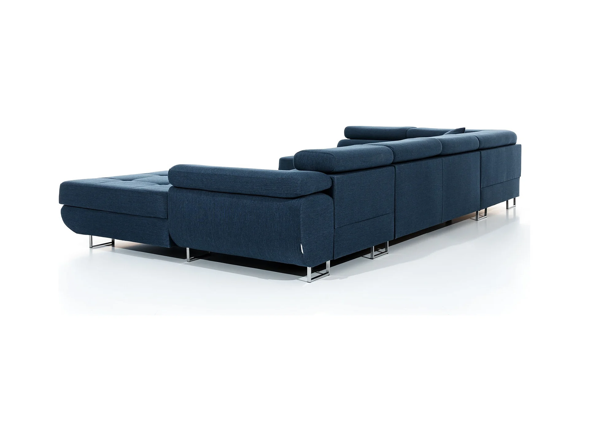 Canapé panoramique tissu gris convertible avec coffre de rangement Romano 345cm-Coffre de rangement à gauche