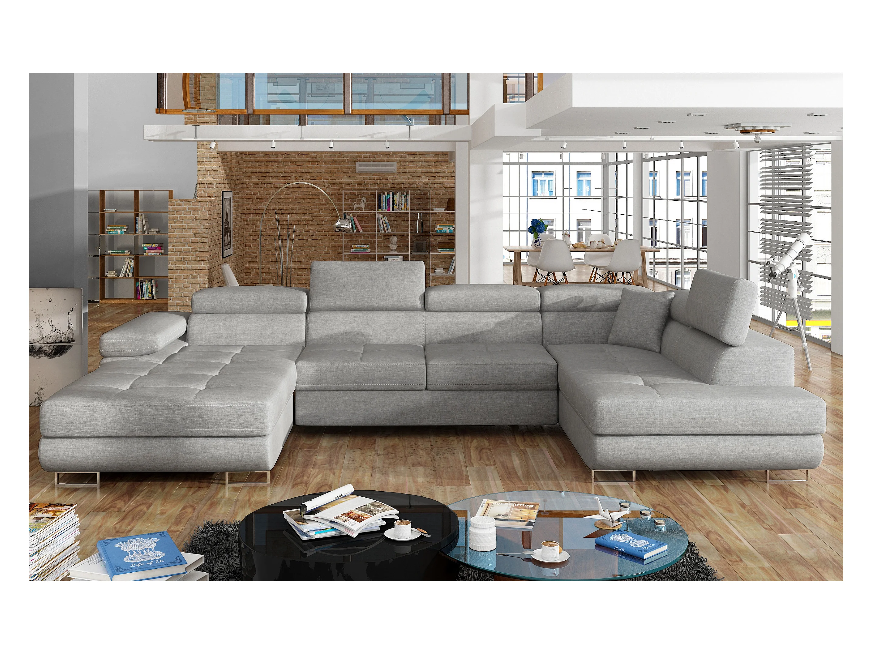 Canapé panoramique convertible tissu gris clair avec coffre de rangement Triano 342cm-Coffre de rangement à gauche