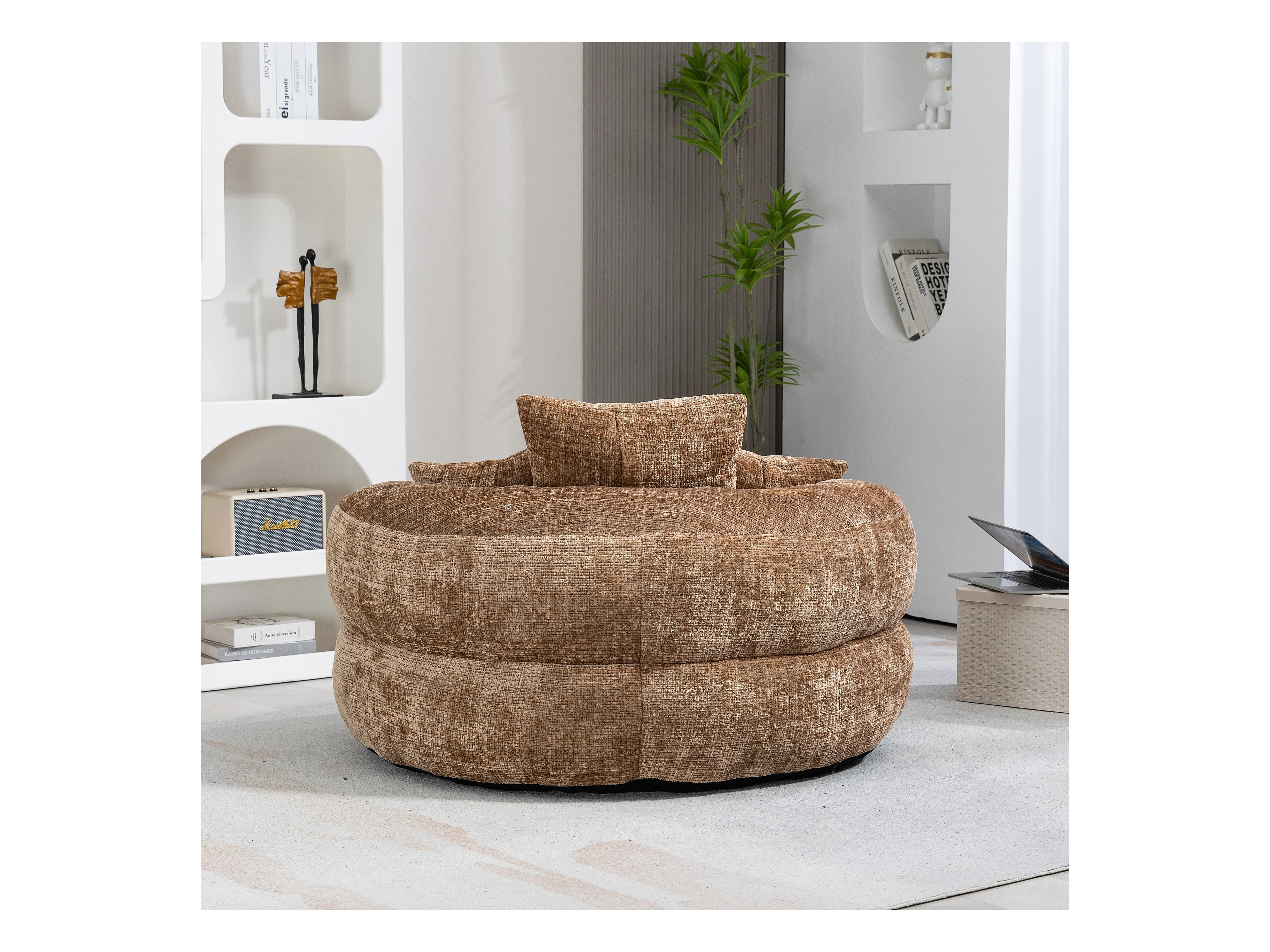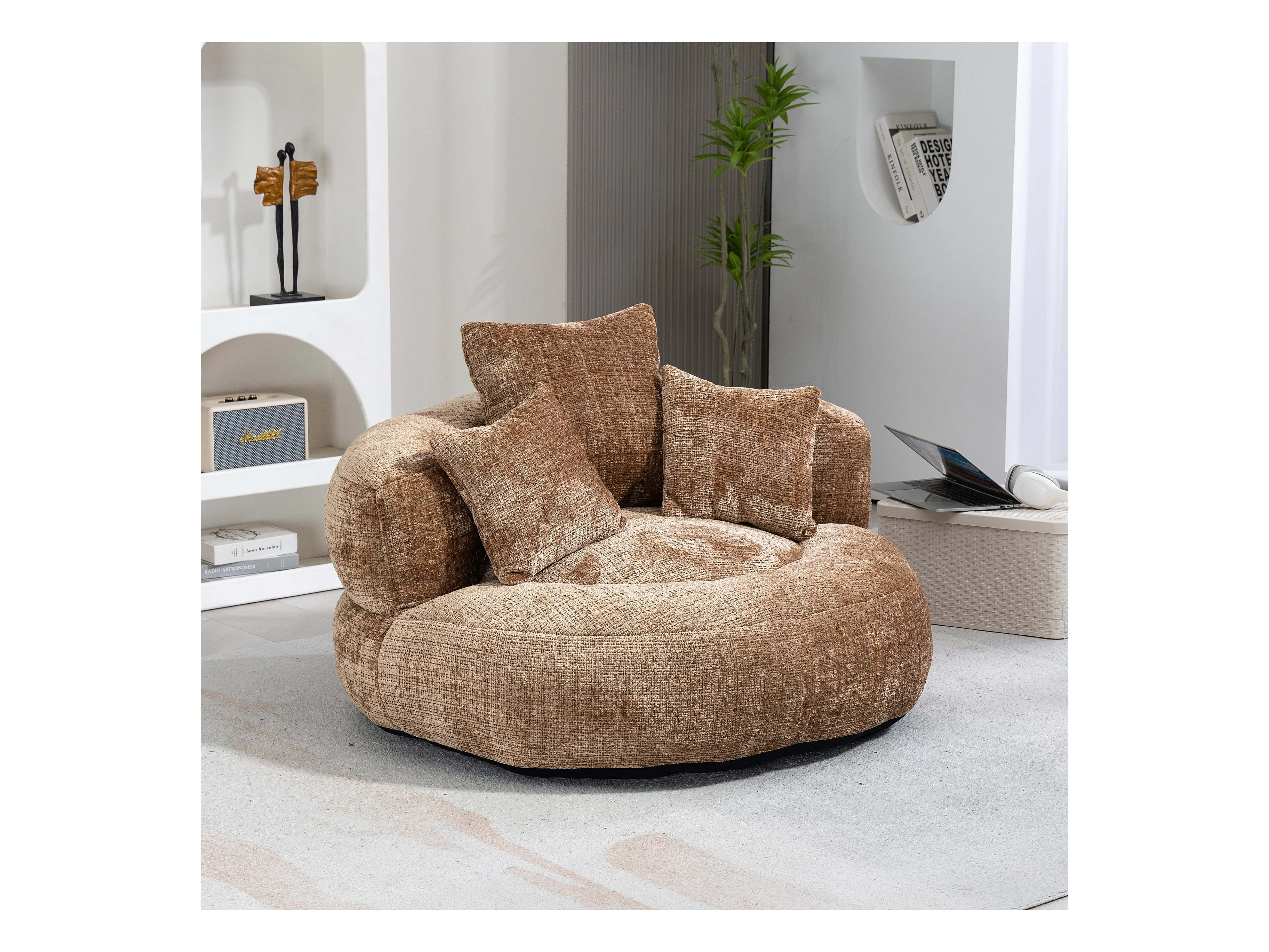 Canapé paresseux durable avec haut dossier, 3 coussins, chenille, café, pour intérieur et extérieur (108x108x52cm)