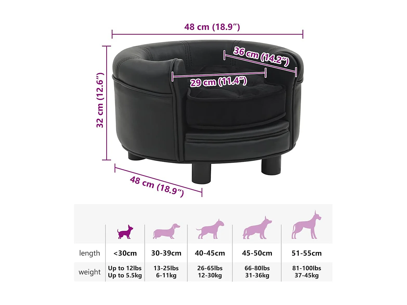Canapé pour chien Noir 48x48x32 cm Peluche et similicuir