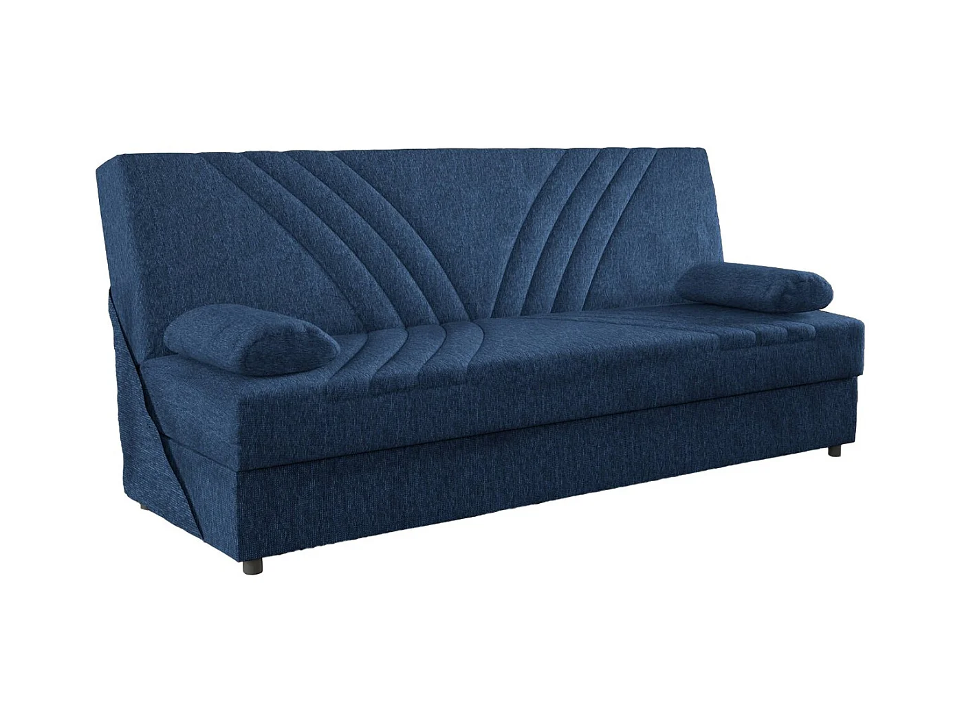 Canapé Ramon, Canapé conteneur 3 places avec 2 coussins inclus, Canapé de salon en tissu rembourré avec ouverture clic-clac, 181x81h88 cm, Bleu