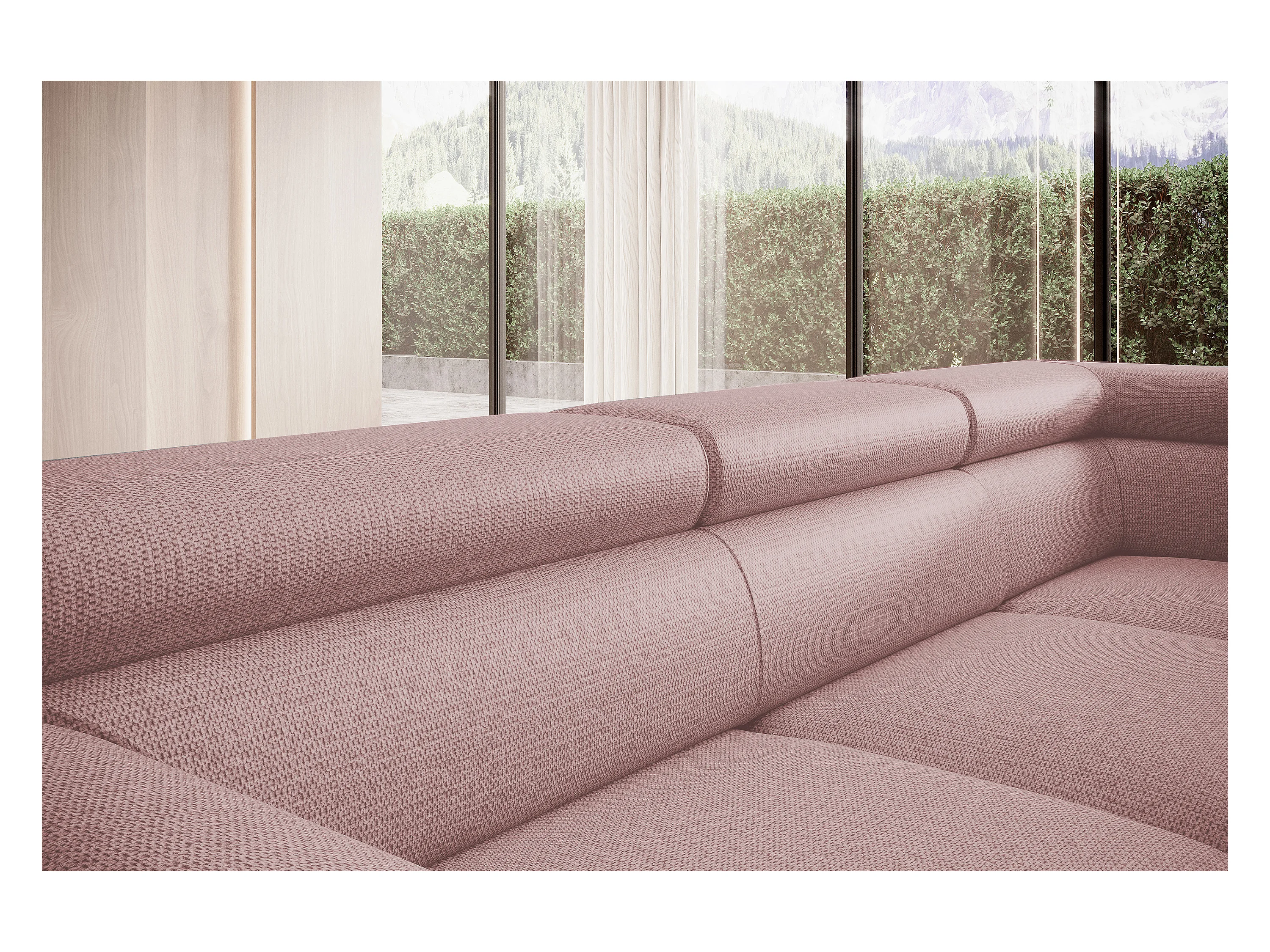 BAGGIO canapé angle 280x196cm, couchage, coffre, assise réglable, têtières, tissu Letto, droit, Rose poudré