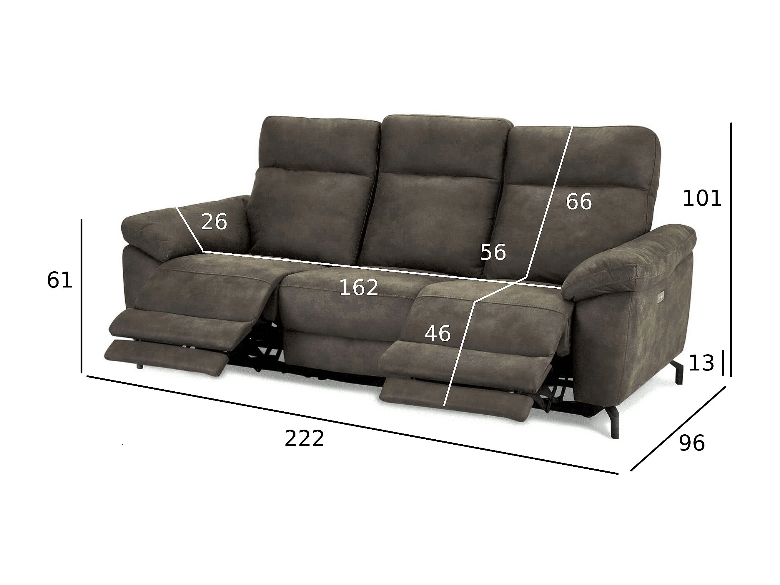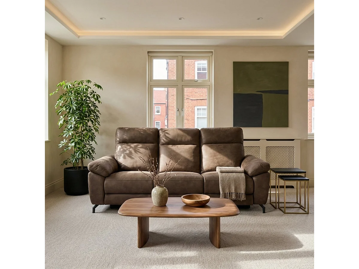 Canapé relax électrique Selesta - 3 places - Tissu - Marron