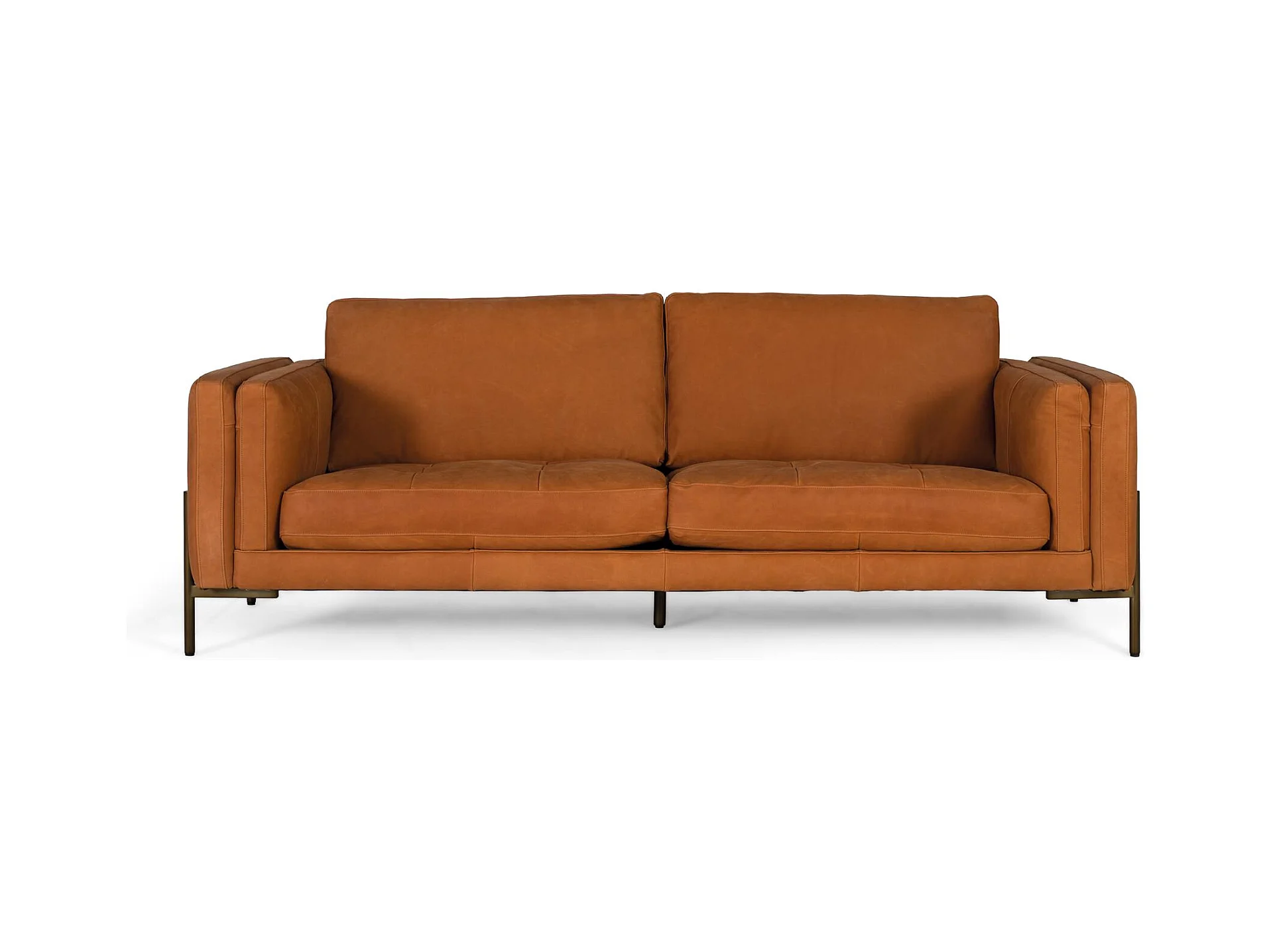 Canapé 3 places de style vintage recouvert de cuir naturel