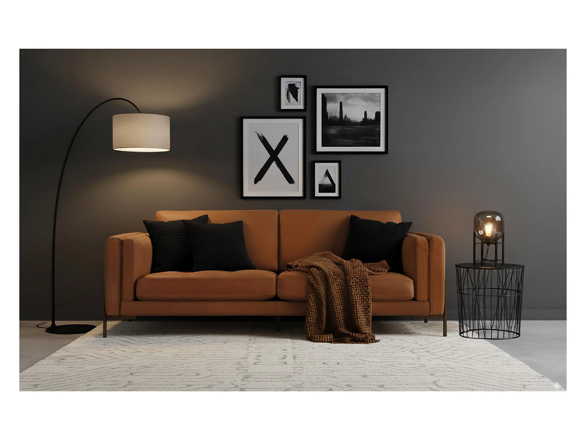 Canapé 3 places en cuir de style vintage avec pieds en métal