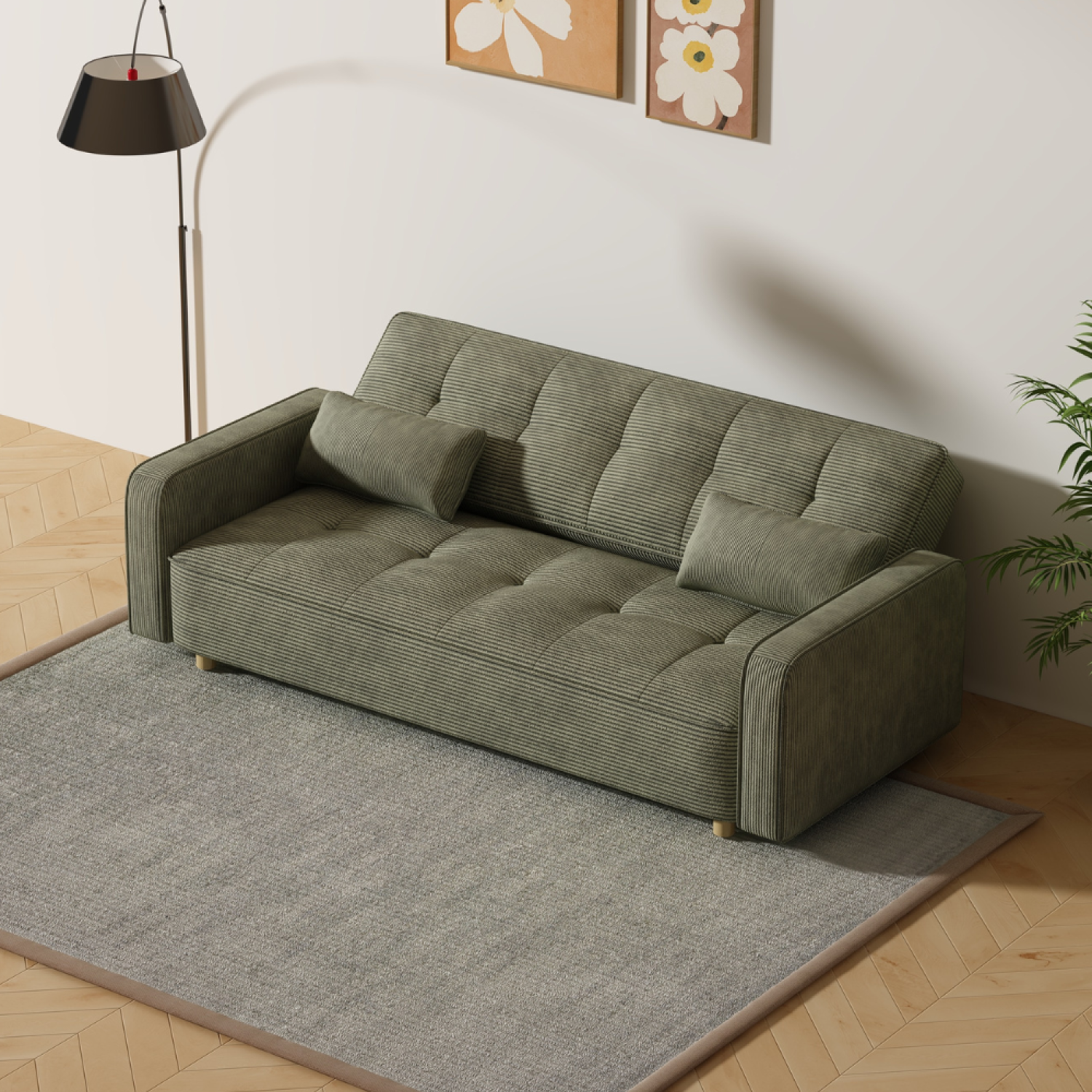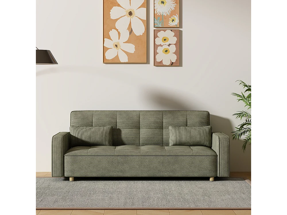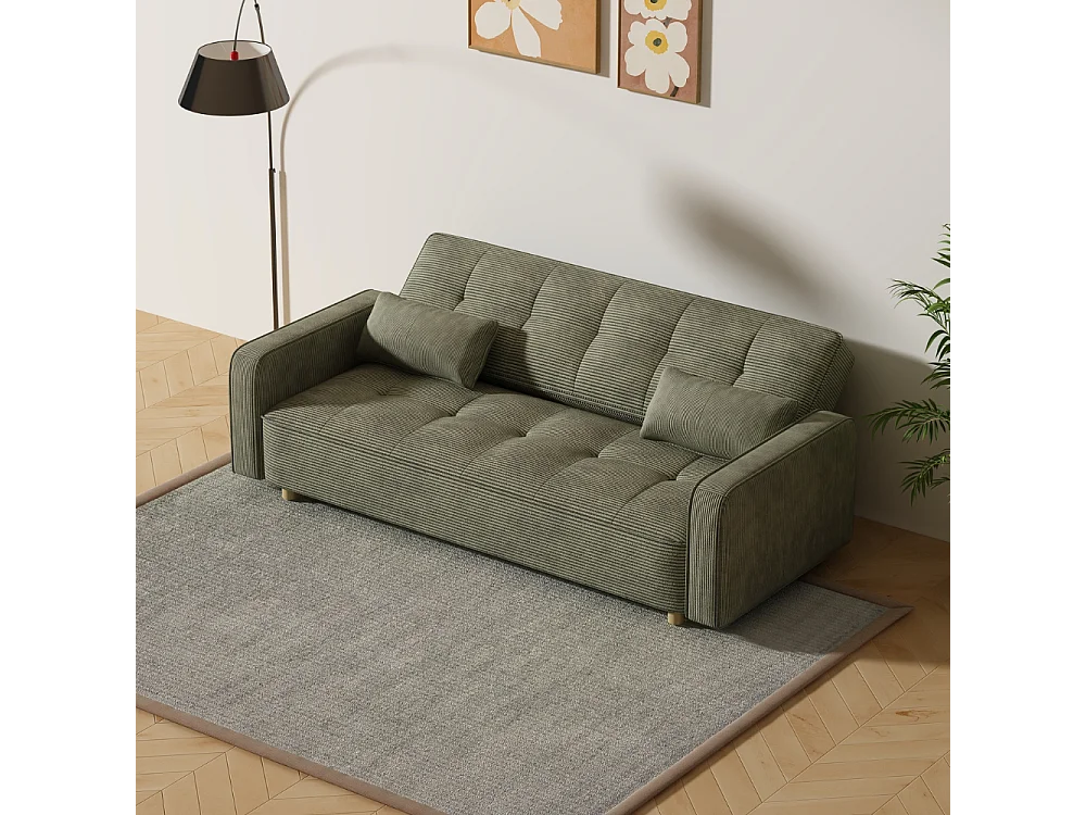 Canapé scandinave convertible 3 places en velours côtelé vert COPENHAGUE