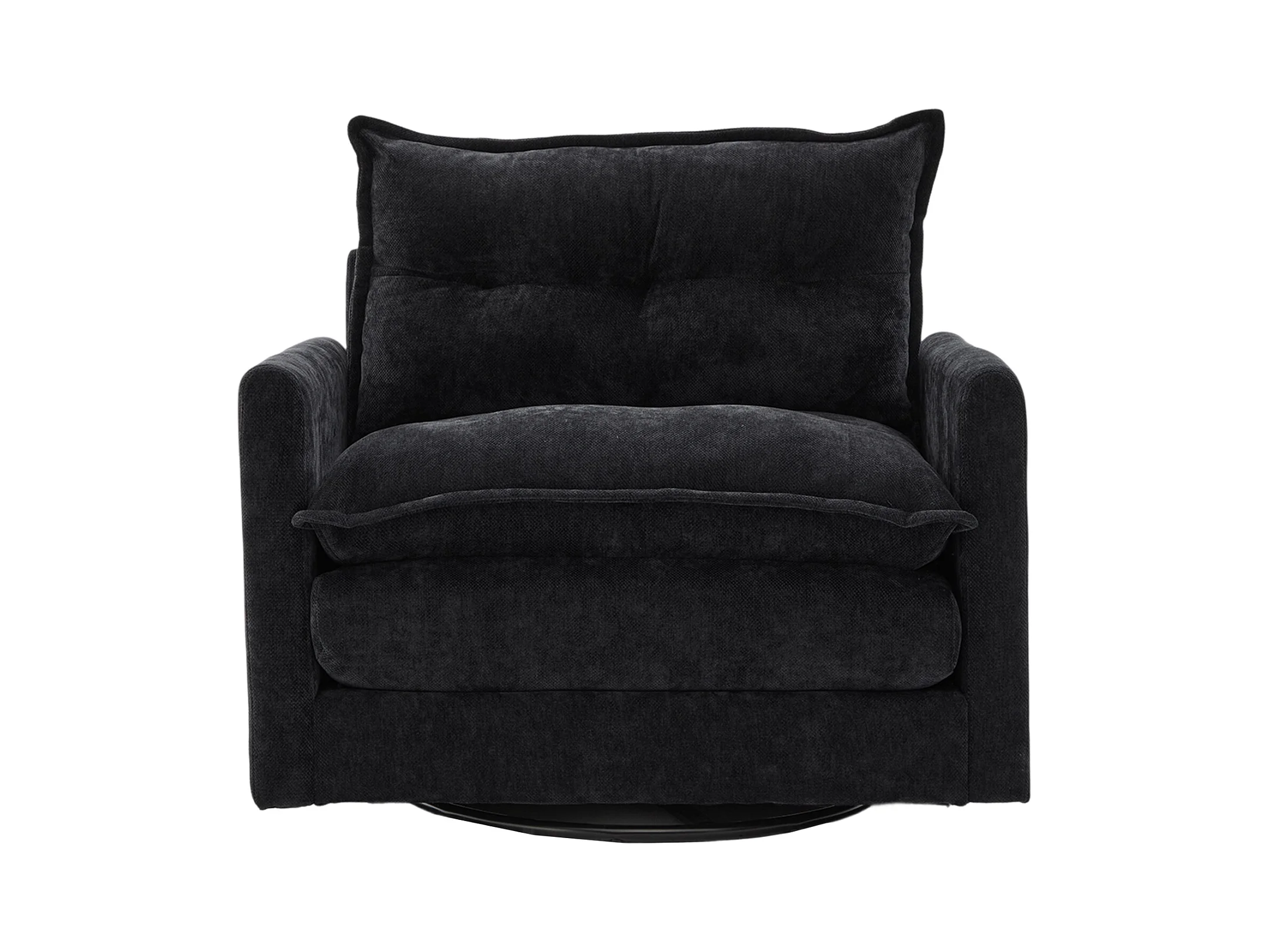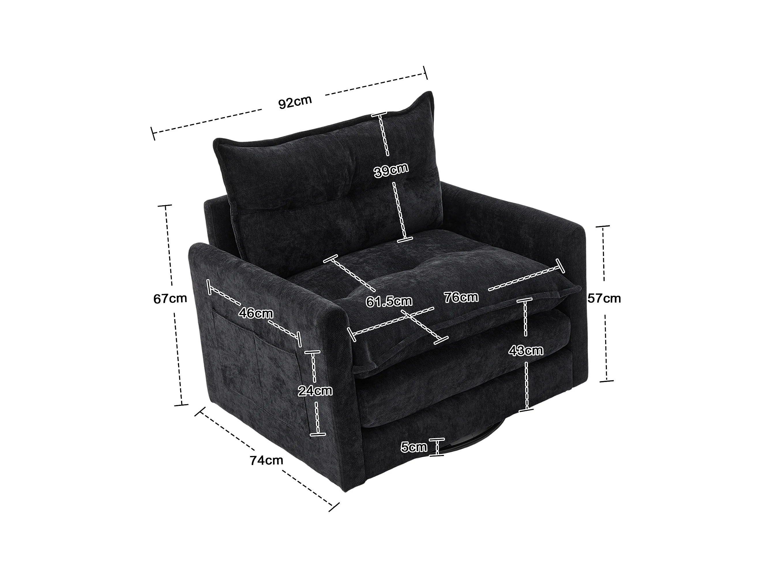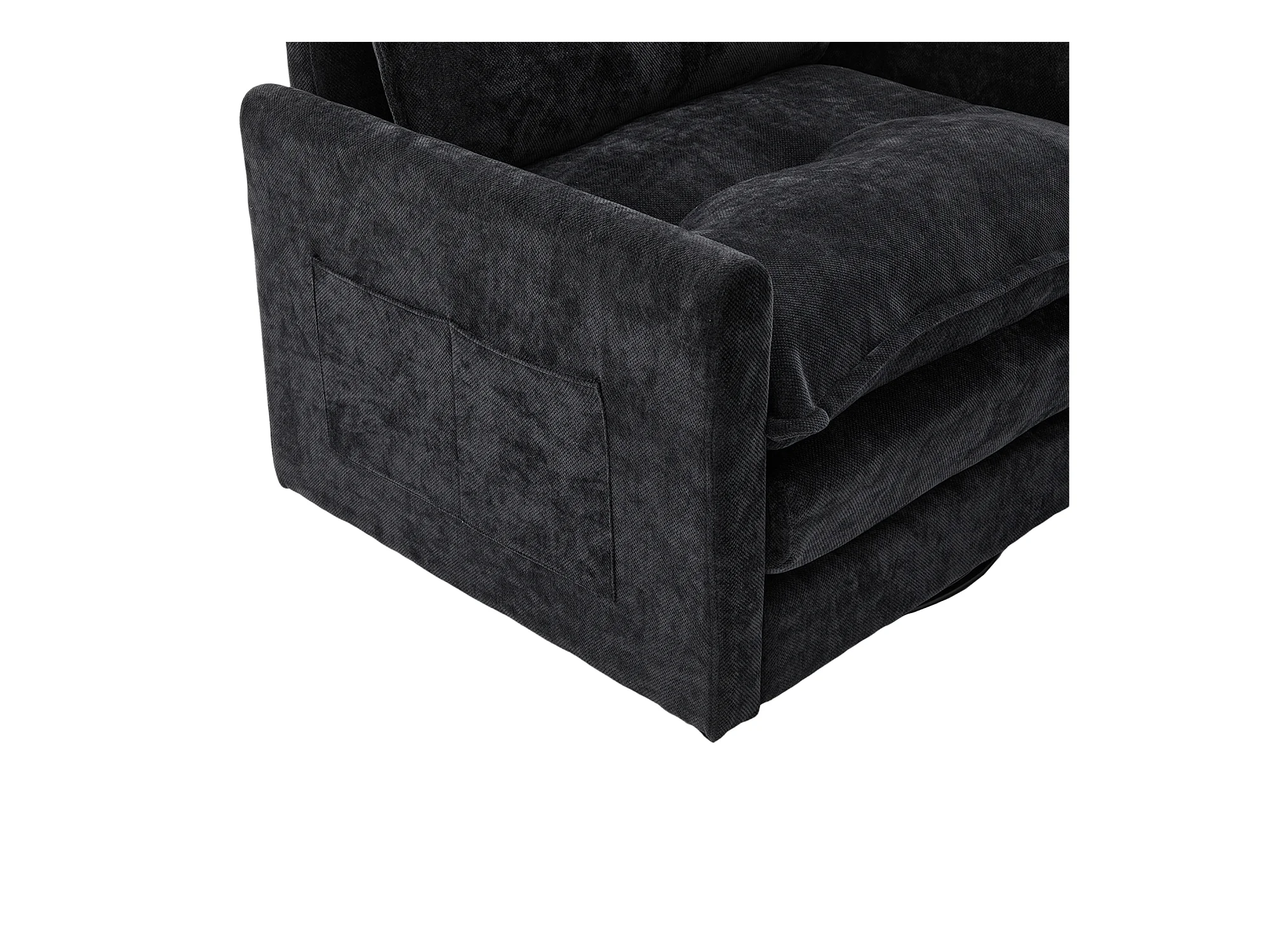 Canapé simple, chenille noir, Canapé pivotant avec accoudoirs et coussins, pour salon et chambre
