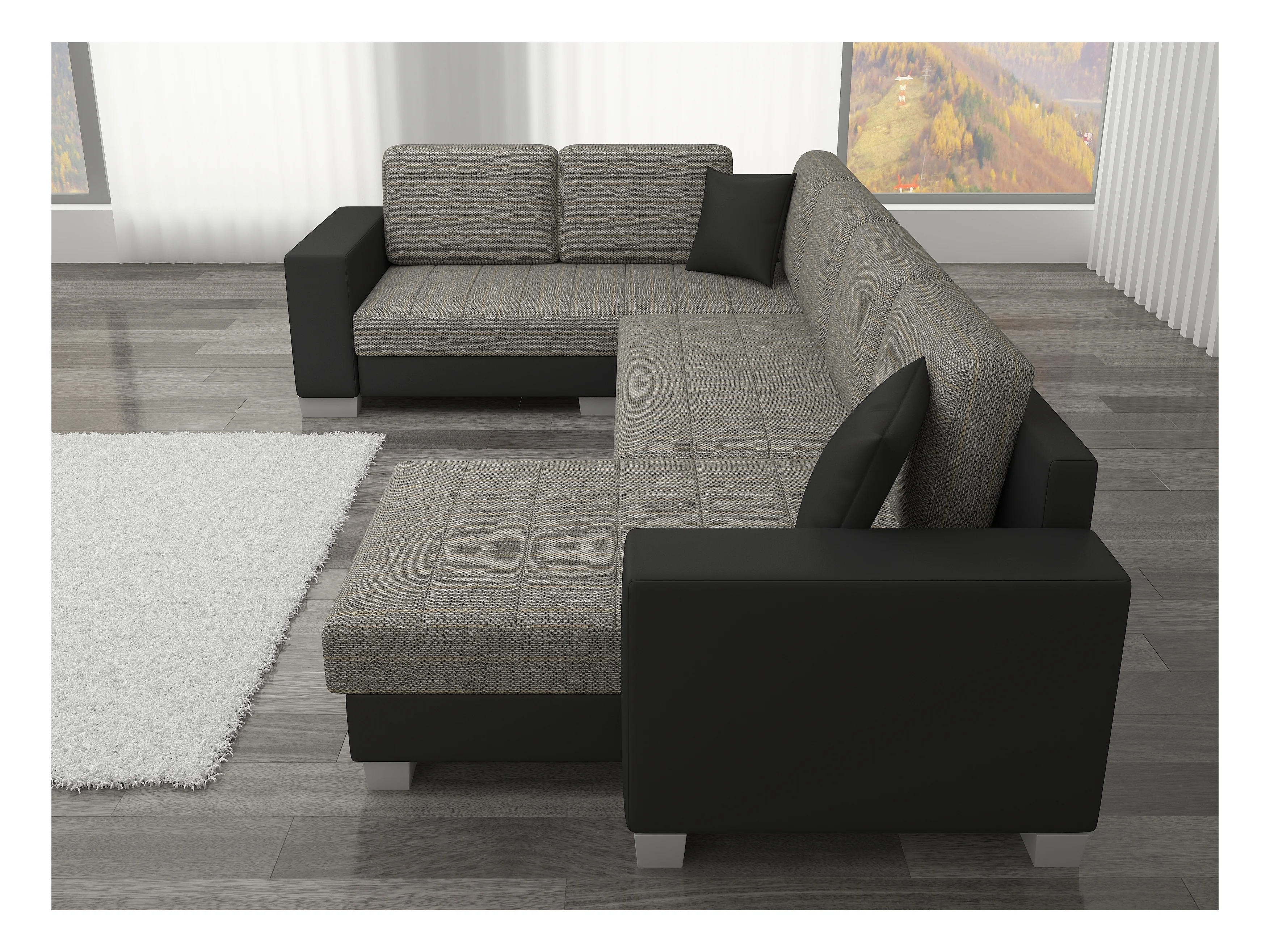 Canapé U convertible tissu noir et simili blanc coffre de rangement à droite Marry 321cm