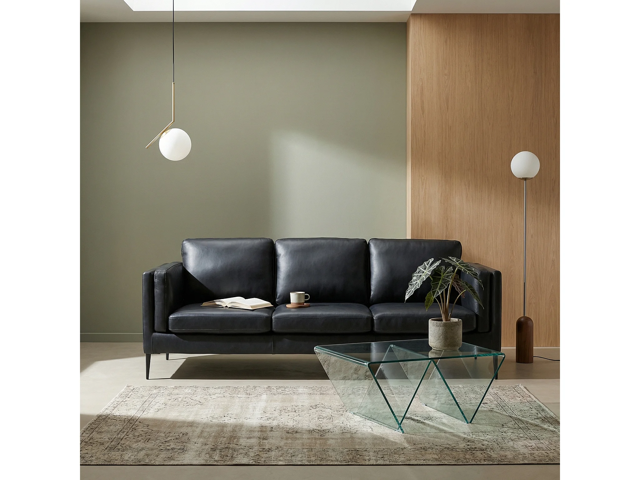 Canapé Valencia - 3 places - Cuir - Noir
