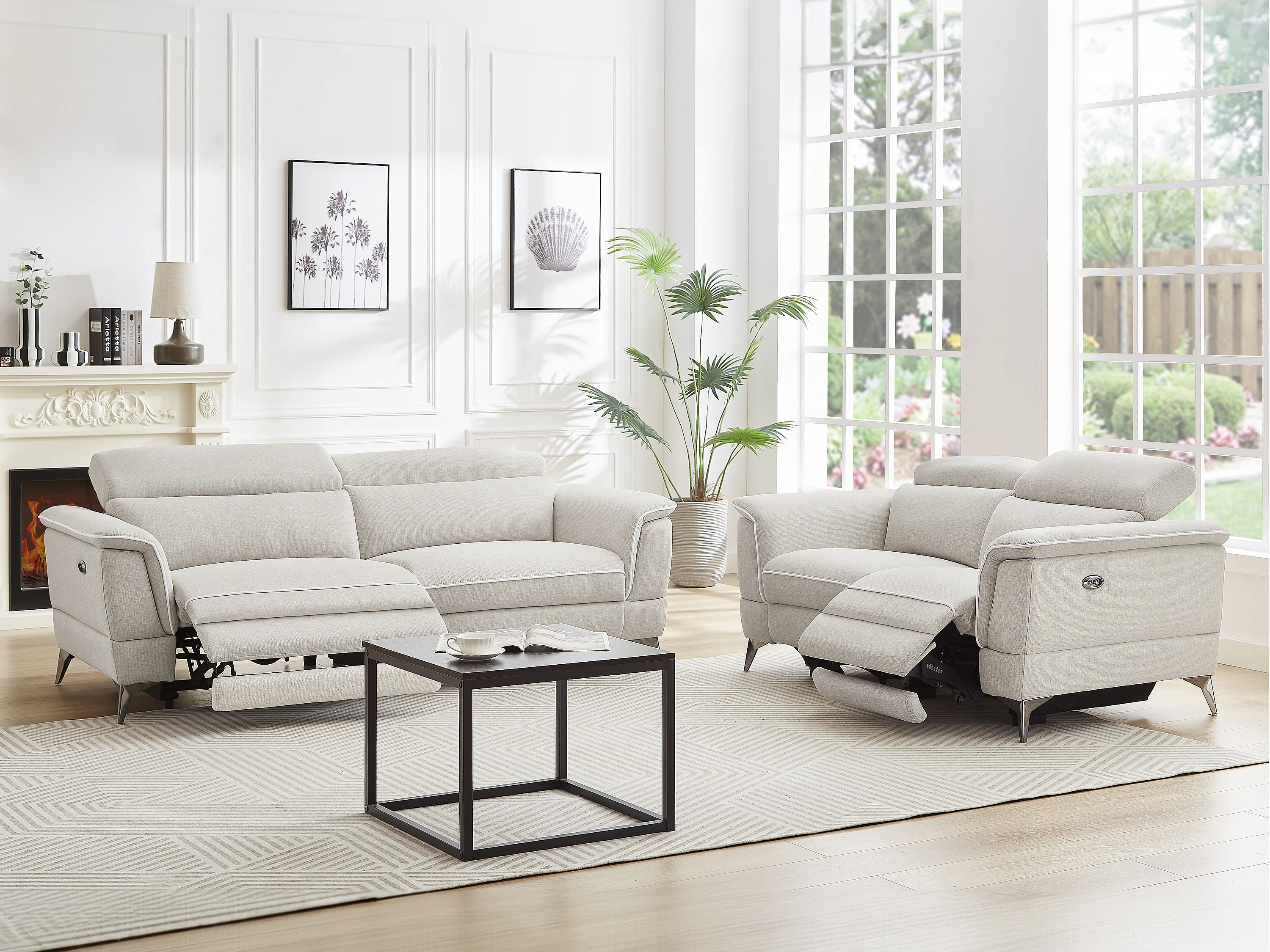 Canapés 3 places et 2 places relax électrique en tissu beige MACARI