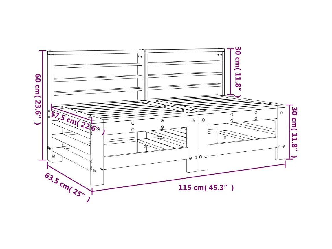 Canapés centraux de jardin 2 pcs gris bois de pin massif