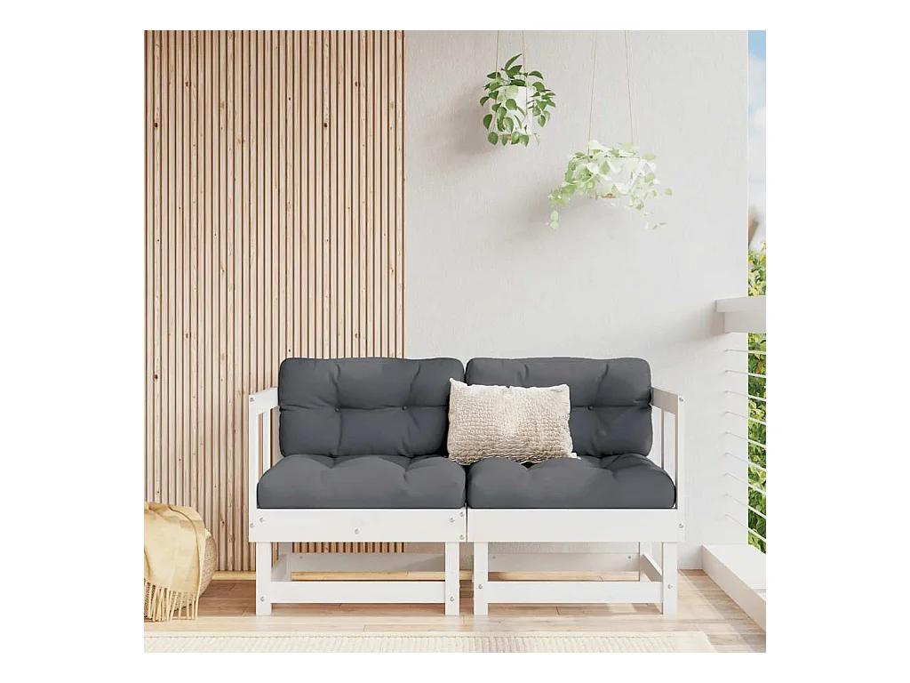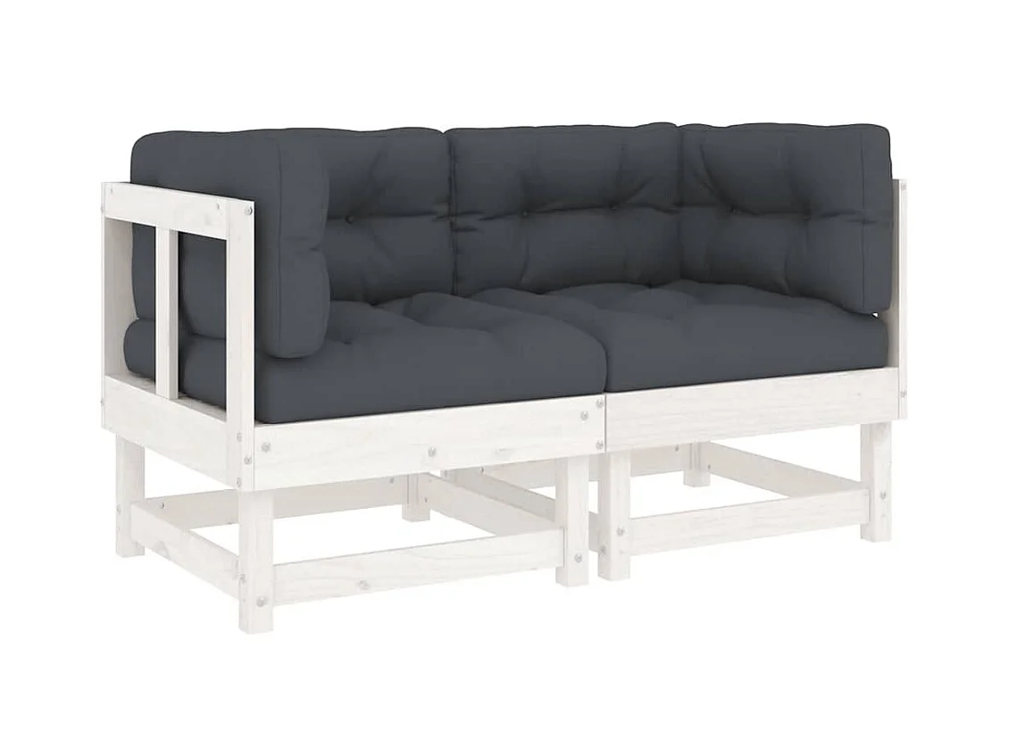 Canapés d'angle de jardin 2 pcs blanc bois de pin massif