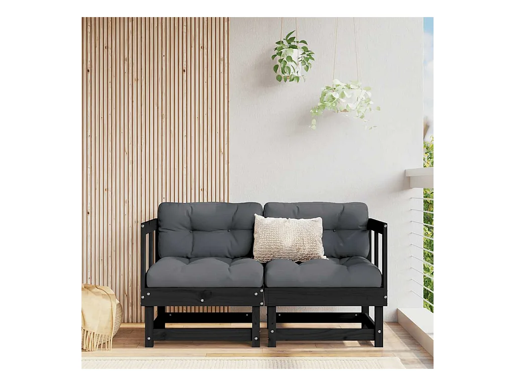 Canapé 2 places de jardin et coussins Noir Bois de pin solide FR87941