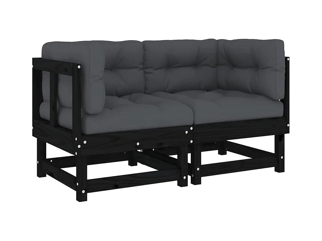 Canapés d'angle avec coussins 2 pcs noir bois de pin massif