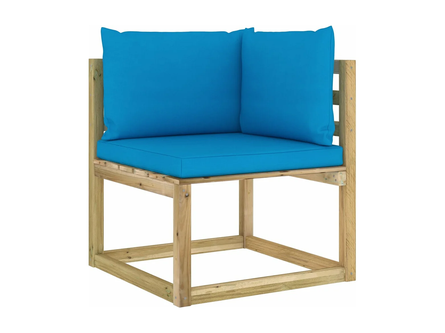 Canapés d'angle de jardin 2pcs et coussins Pin imprégné de vert
