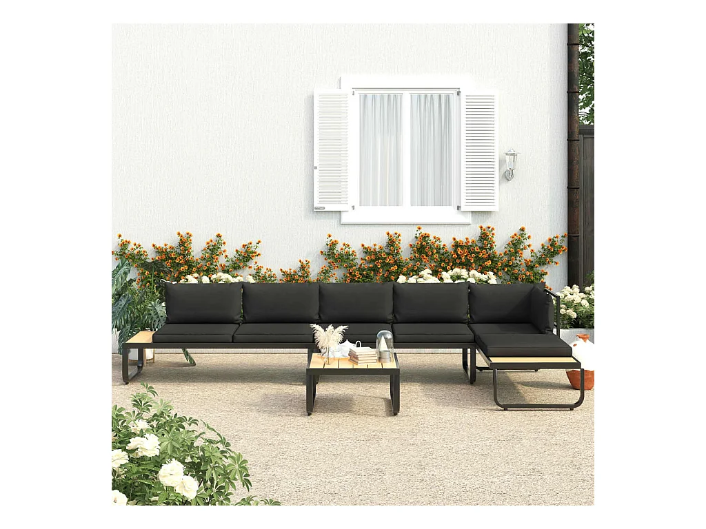 Canapés d'angle de jardin 4 pcs et coussins Aluminium et WPC