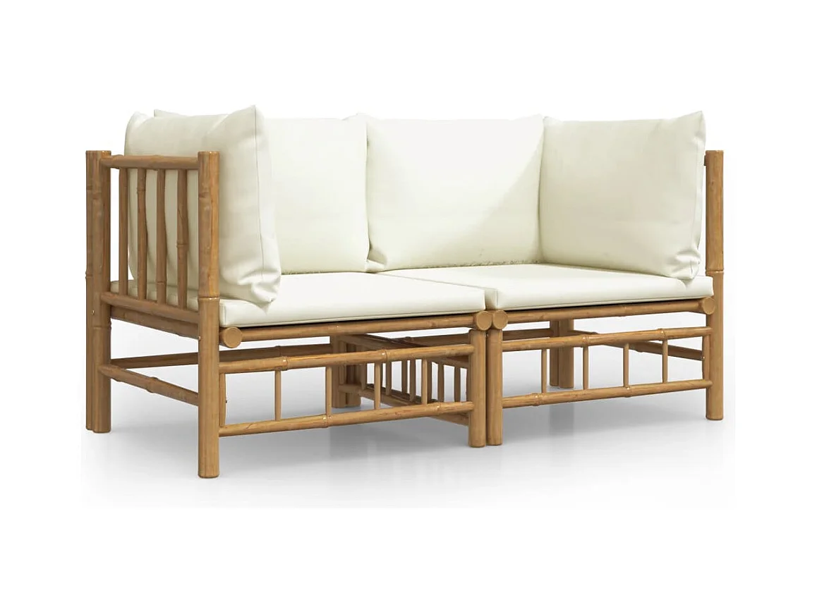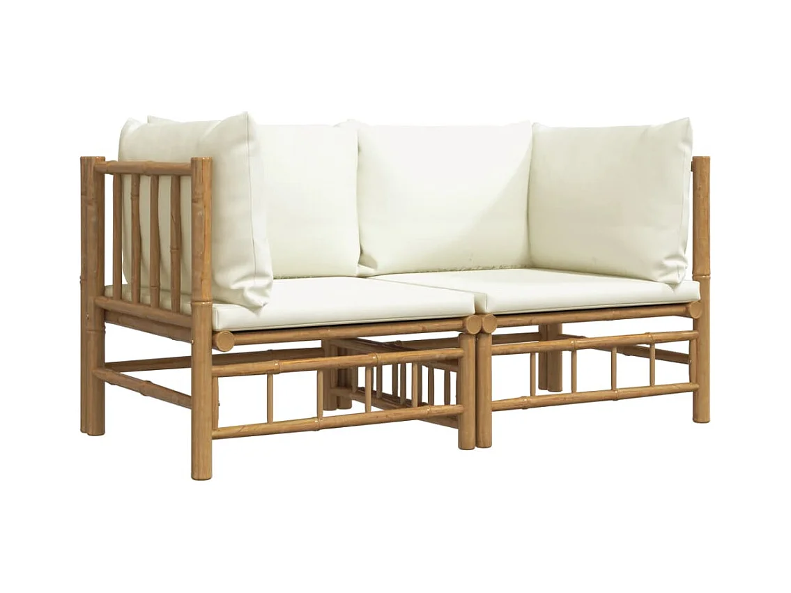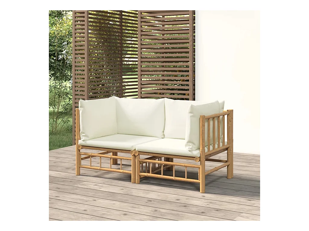 Canapés d'angle de jardin avec coussins blanc crème 2pcs bambou REO64493