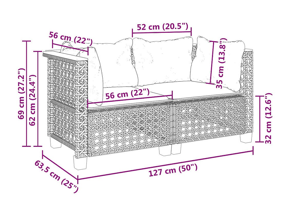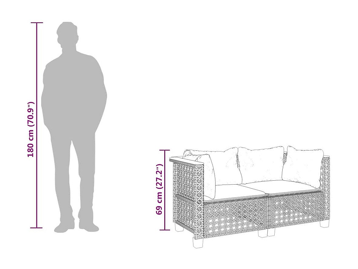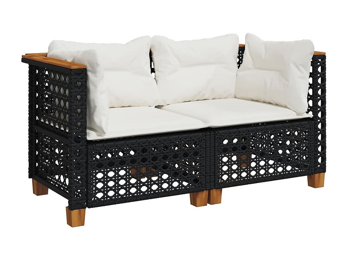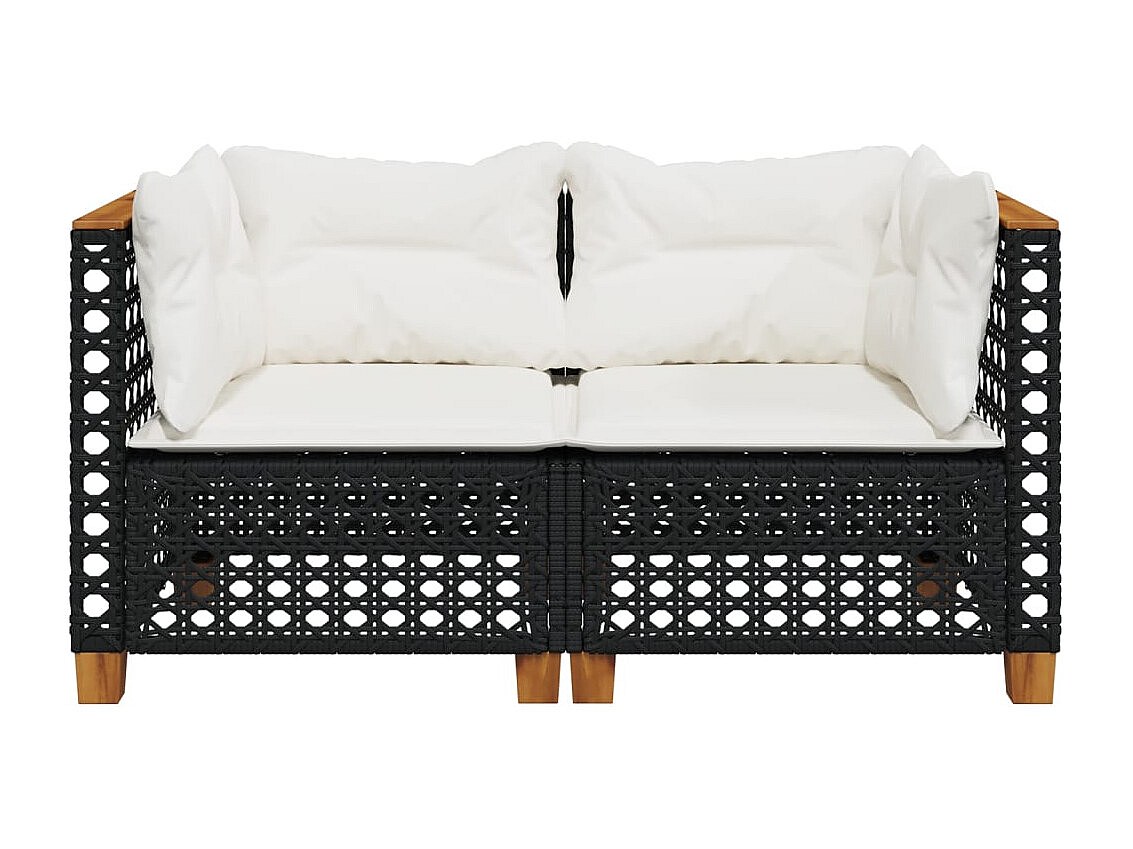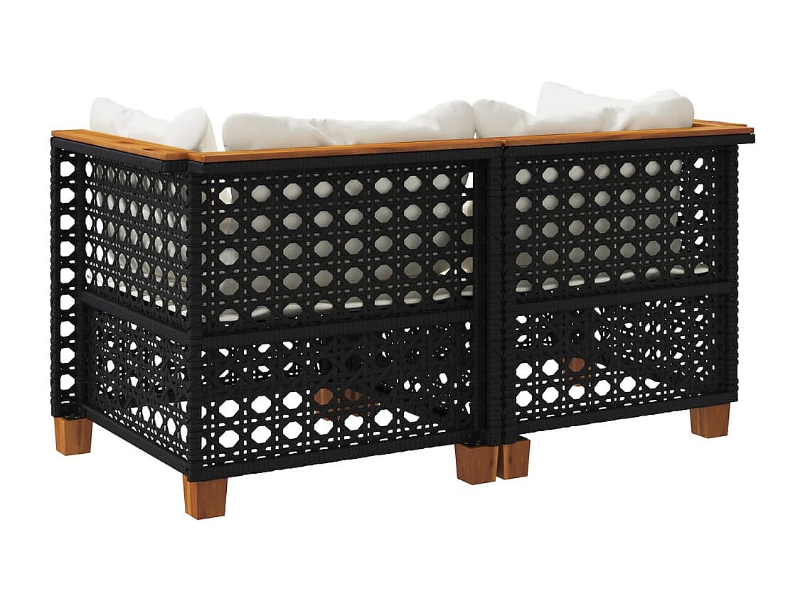 Canapés d'angle de jardin et coussins 2 pcs noir résine tressée
