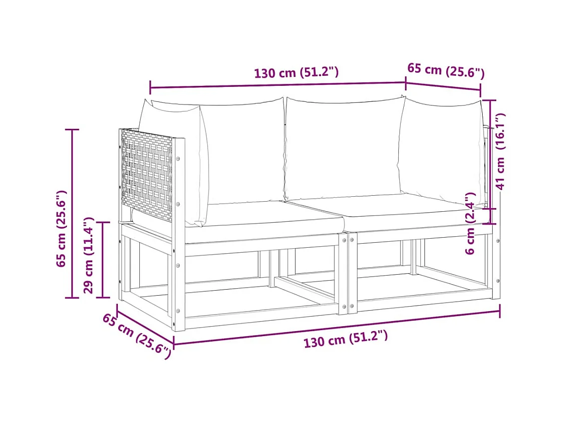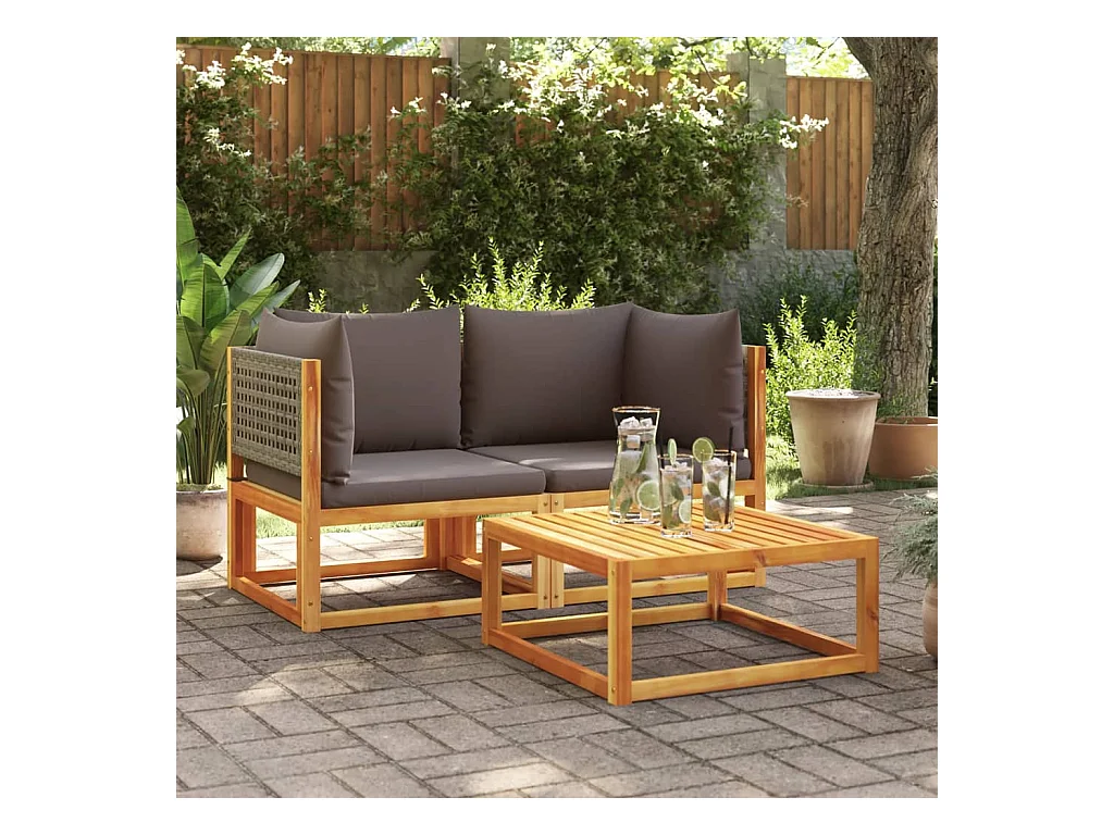 Canapés d'angle de jardin avec coussins 2 pièces Bois d'acacia et rotin