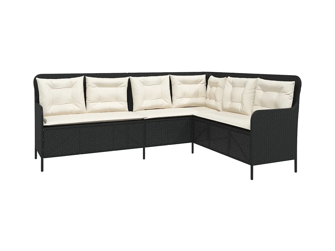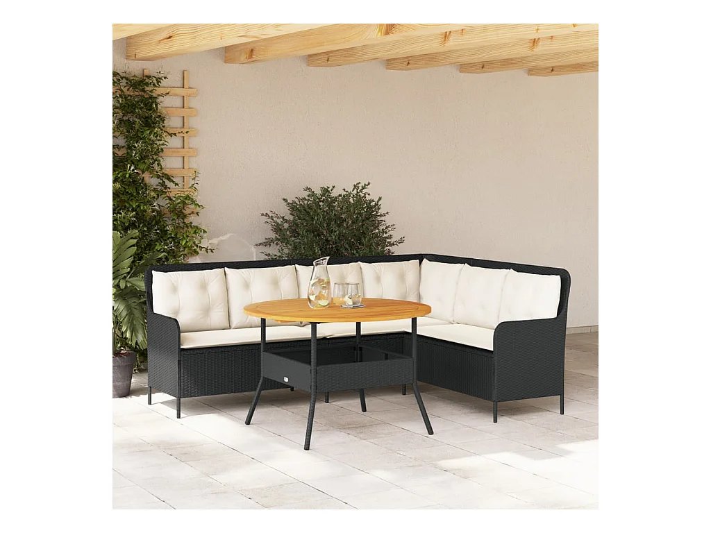 Canapé de jardin 2 places avec table et tabourets noir rotin
