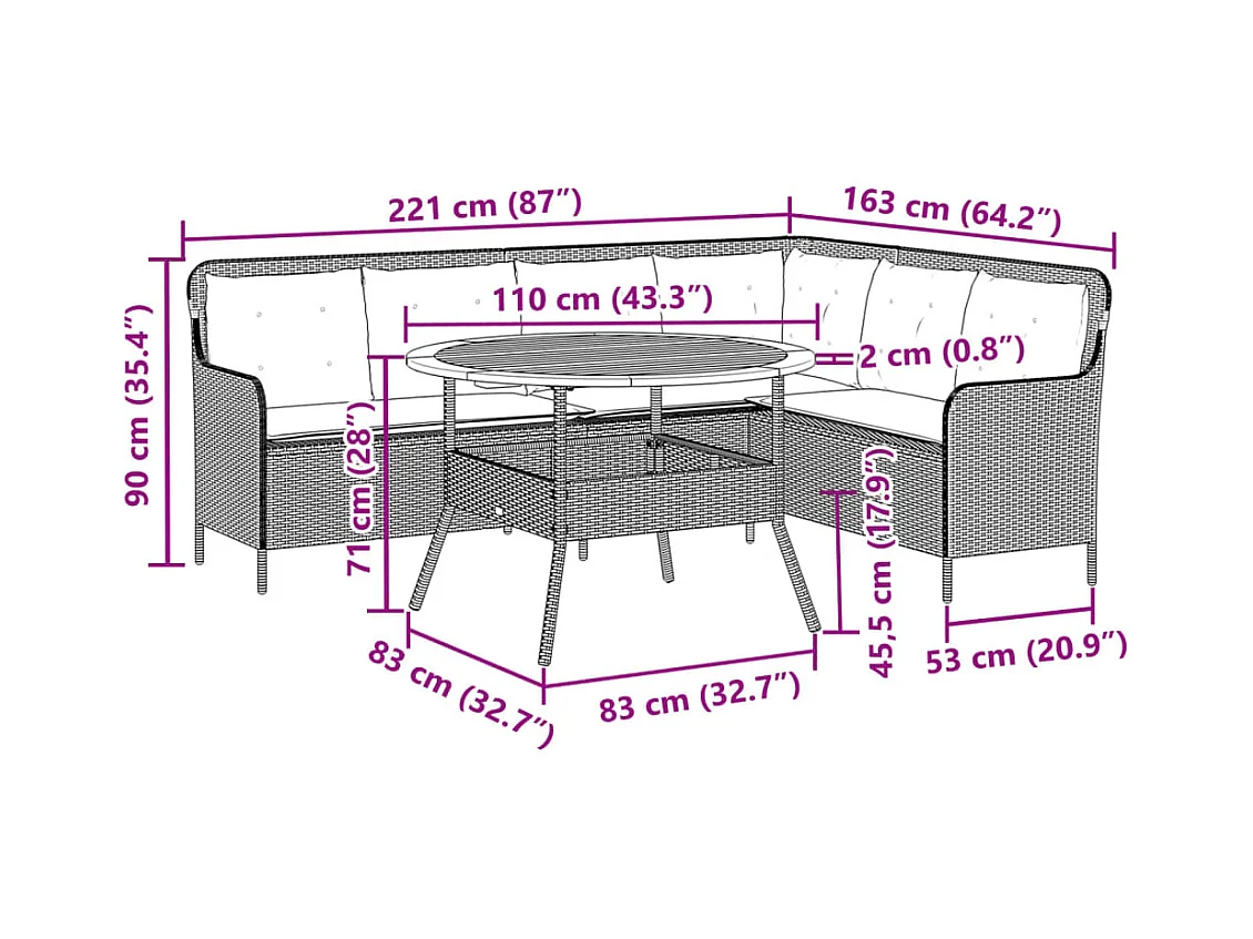 Salon complet de jardin Canapé 2 places et 2 fauteuils