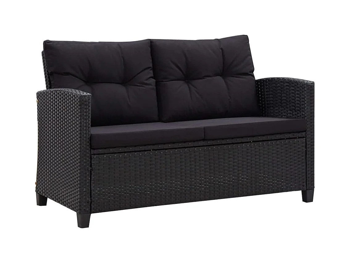 Canapé 2 places de jardin et coussins Noir 124cm Résine tressée