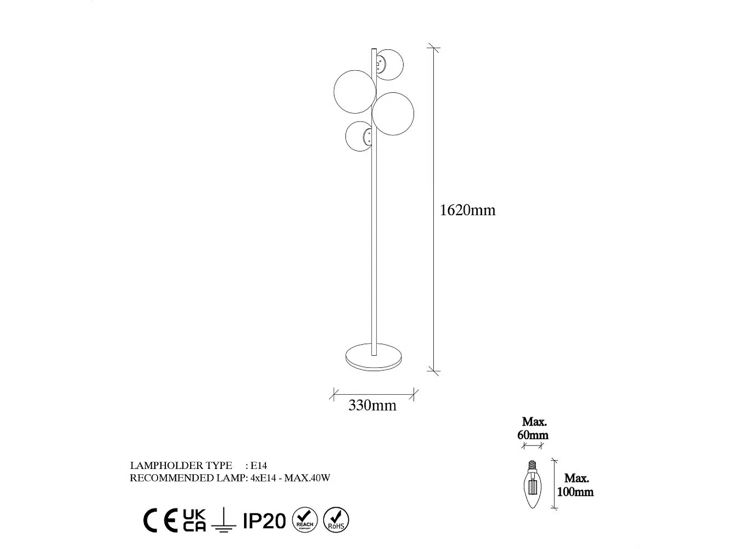 Lampadaire vintage doré - 4 lampes CANDICE