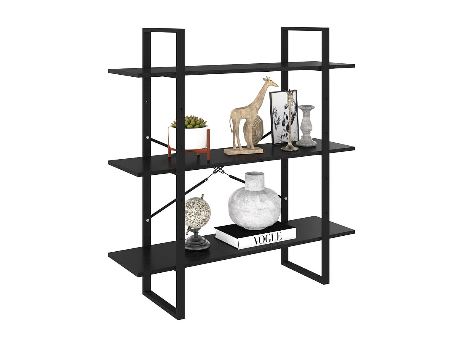 Capitola Bibliothèque à 3 niveaux Noir 100x30x105 cm Bois de pin massif