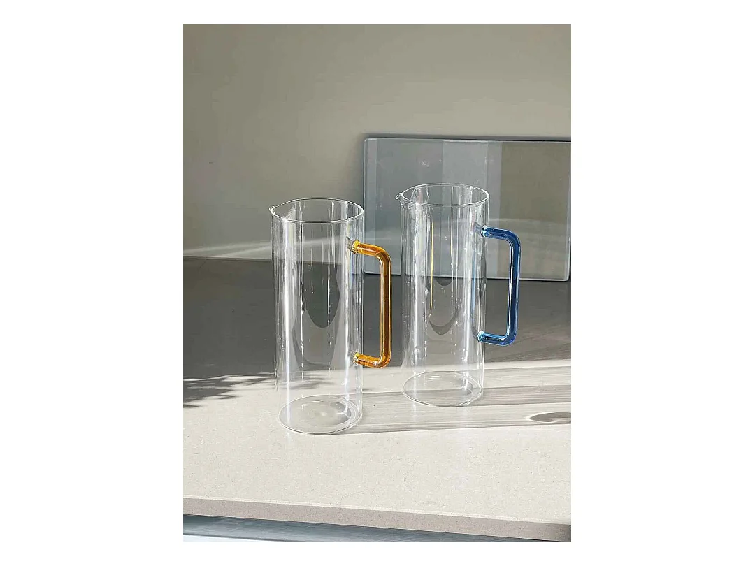 Carafe en verre soufflé transparent/bleu 1200 ml, Tube
