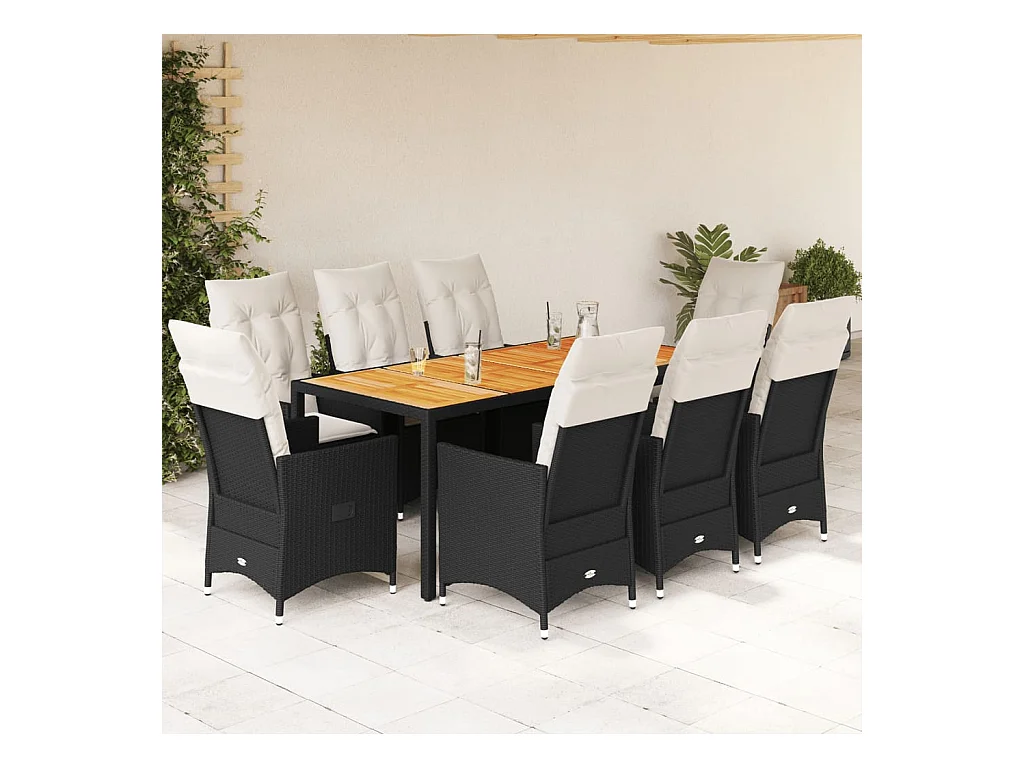 Thomian Ensemble à manger de jardin 9pcs coussins noir résine tressée