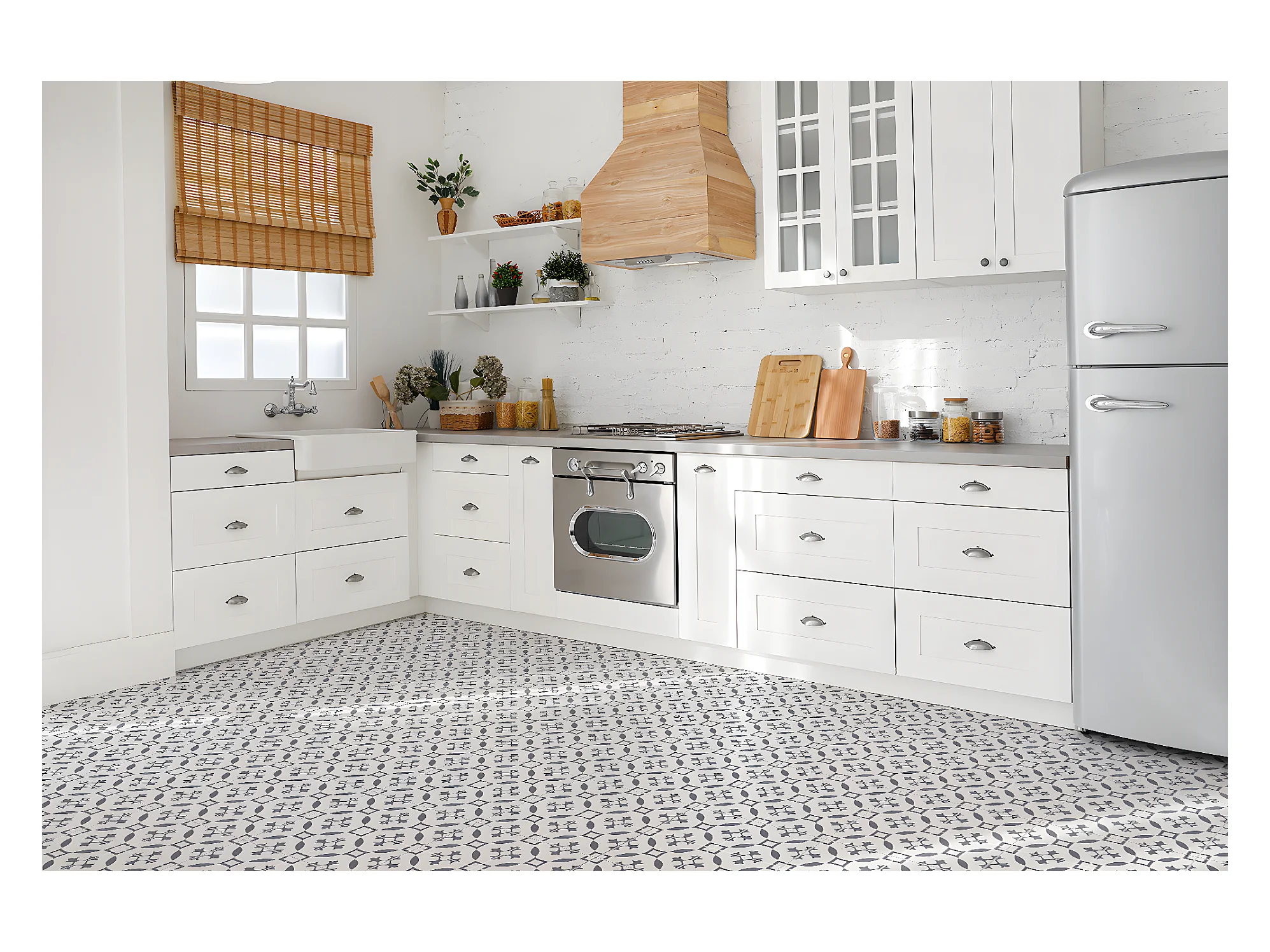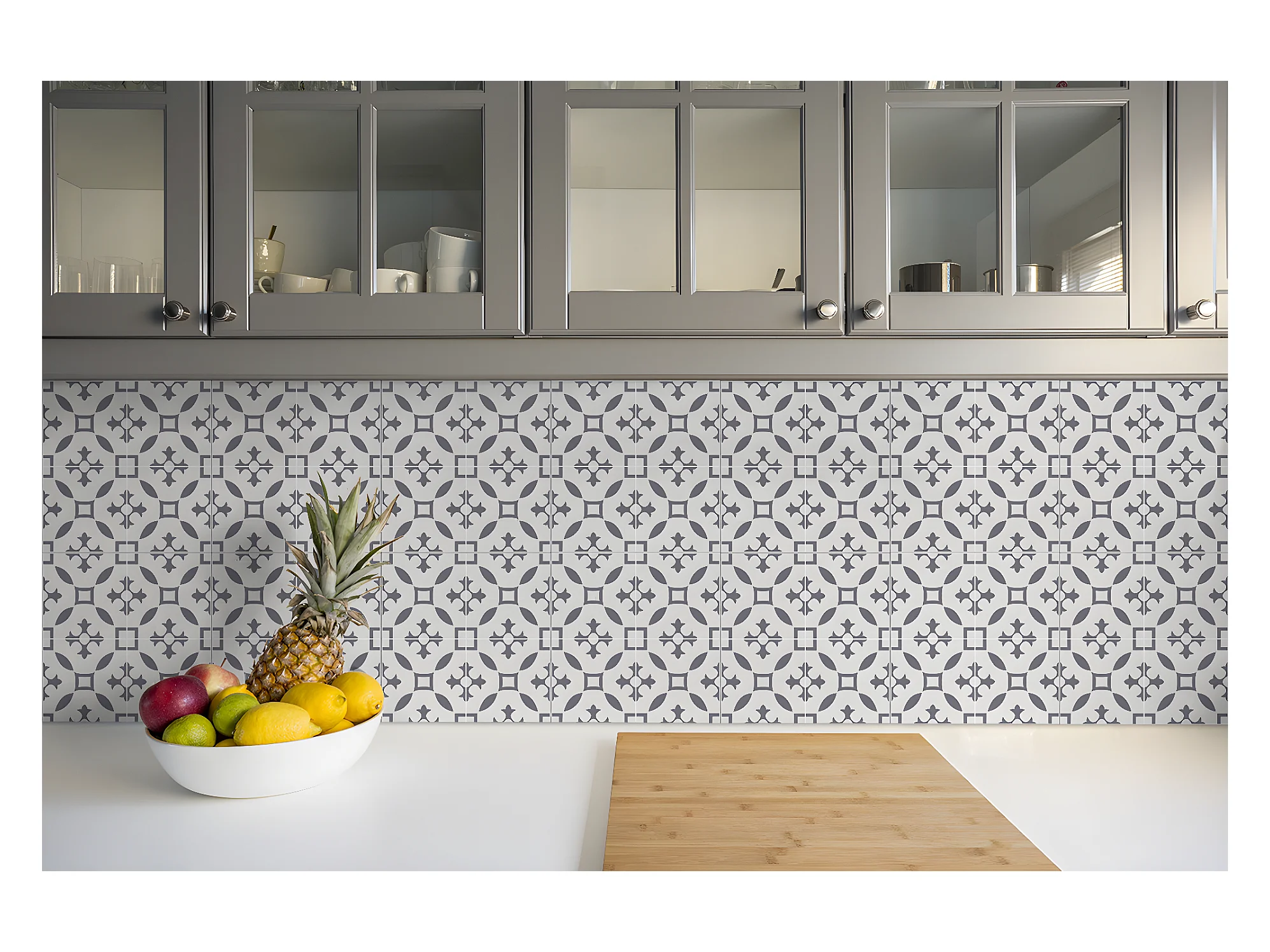 Carreaux autocollants PVC, Carrelage PVC adhésif - 9x30x30 - Motif arabe - gris