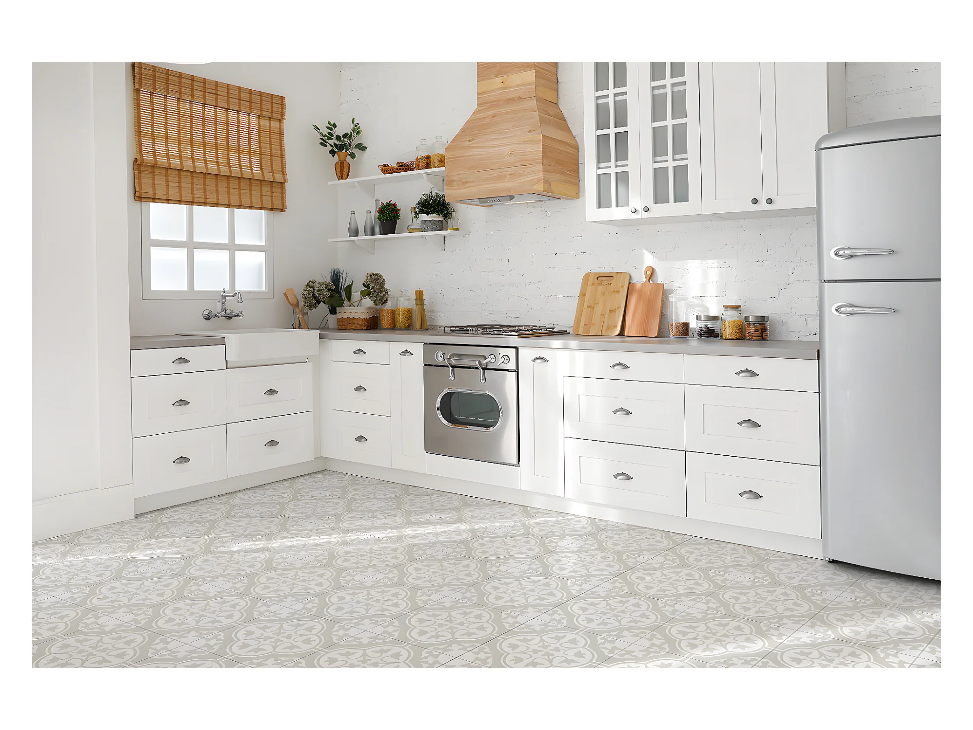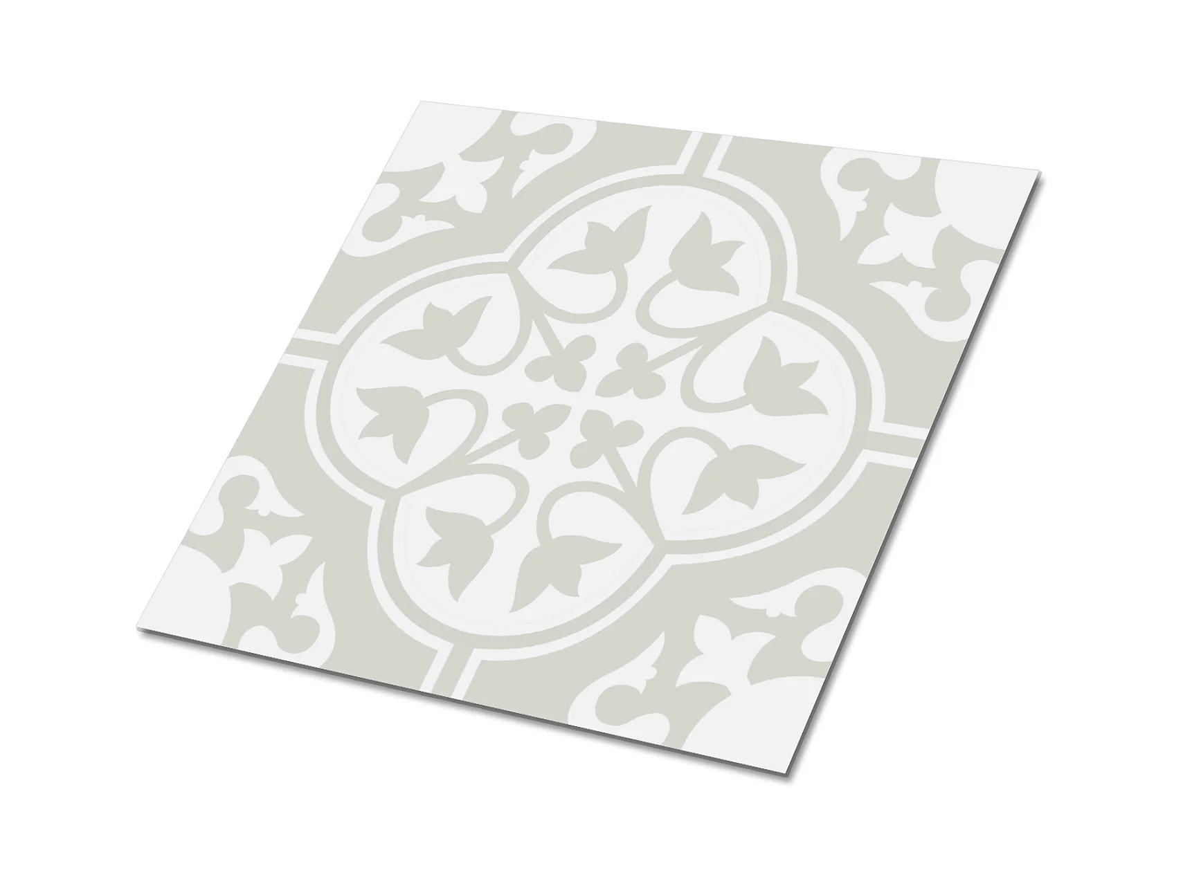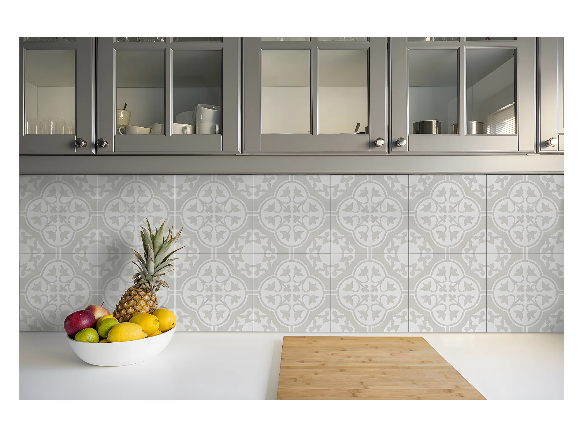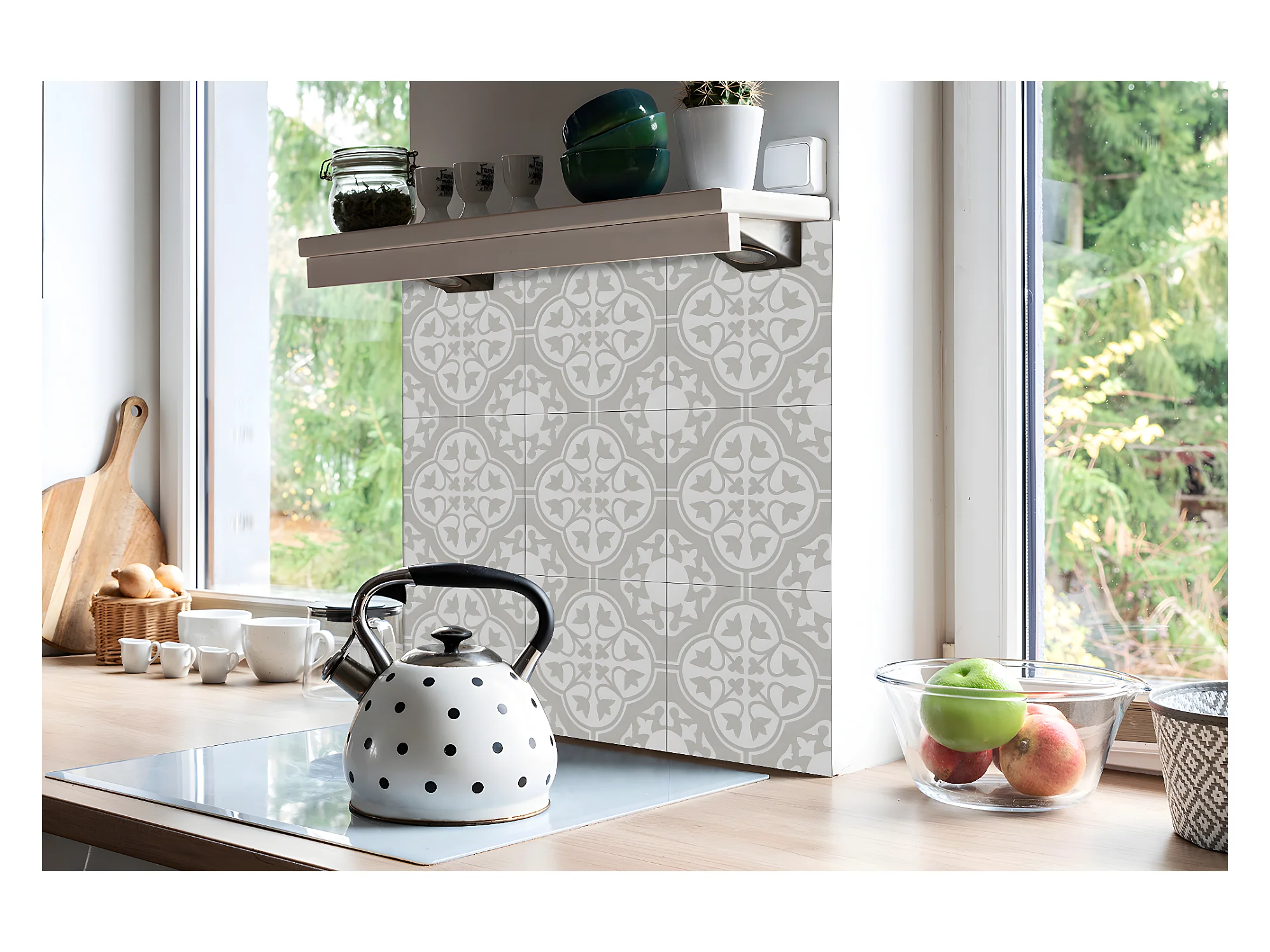 Carreaux autocollants PVC, Carrelage PVC adhésif - 9x30x30 - Fleurs grises ethniques