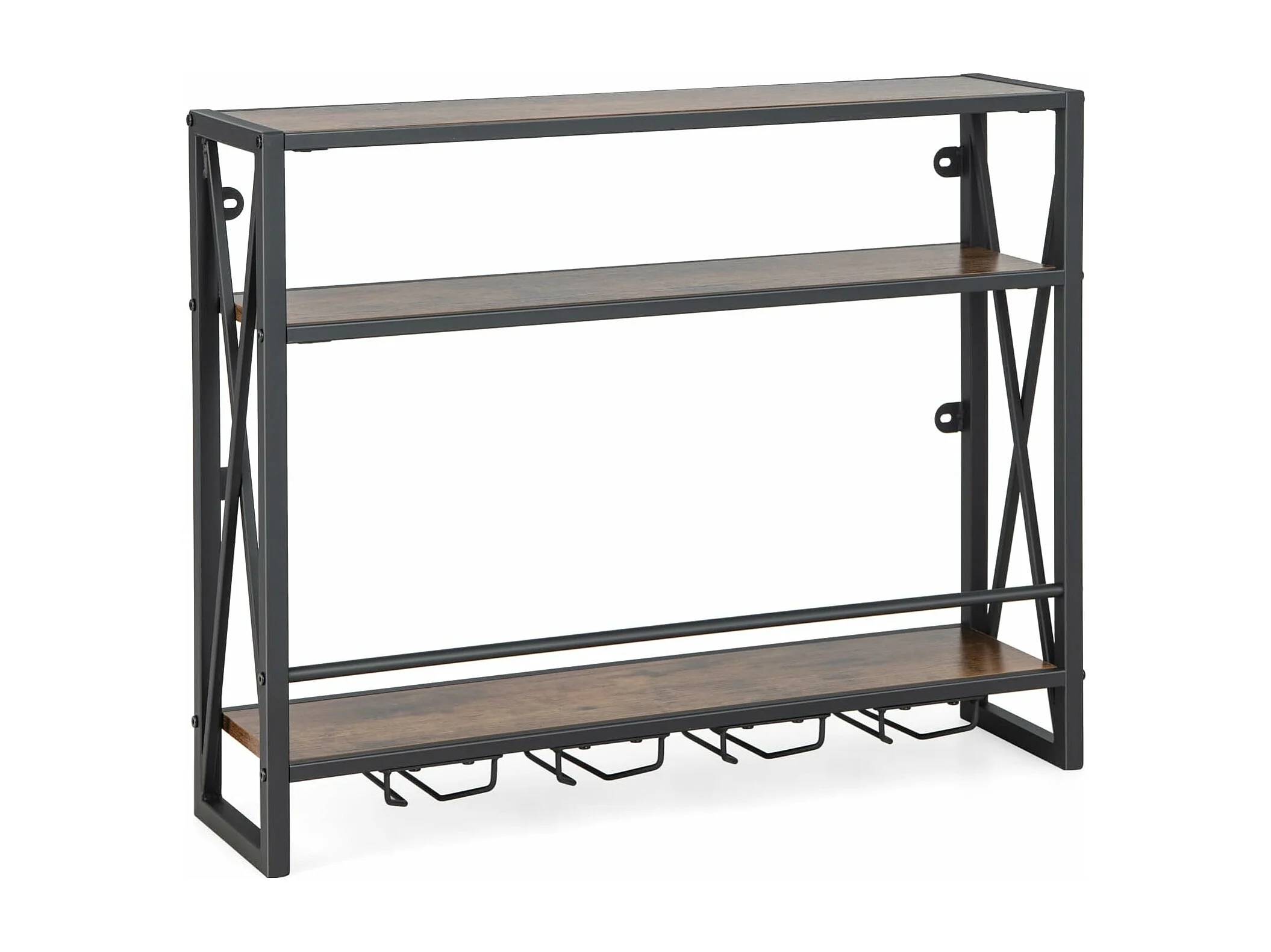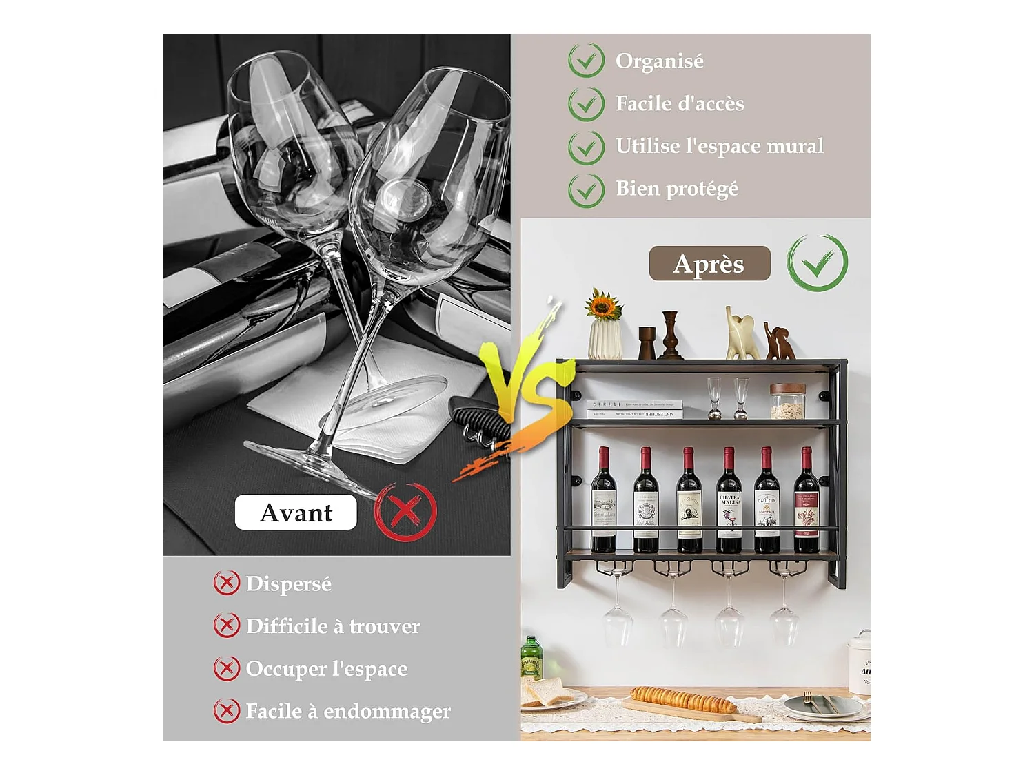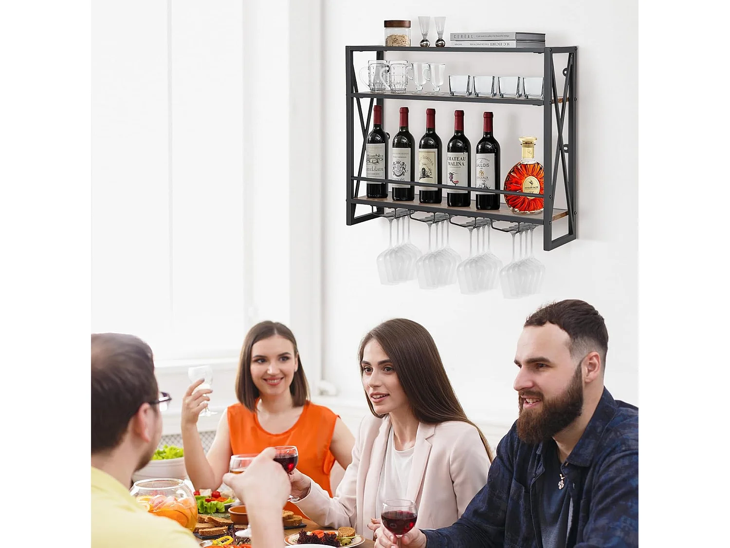 Porte-bouteilles mural industriel,porte-bouteilles 2 niveaux et 3 rangées de porte-verres