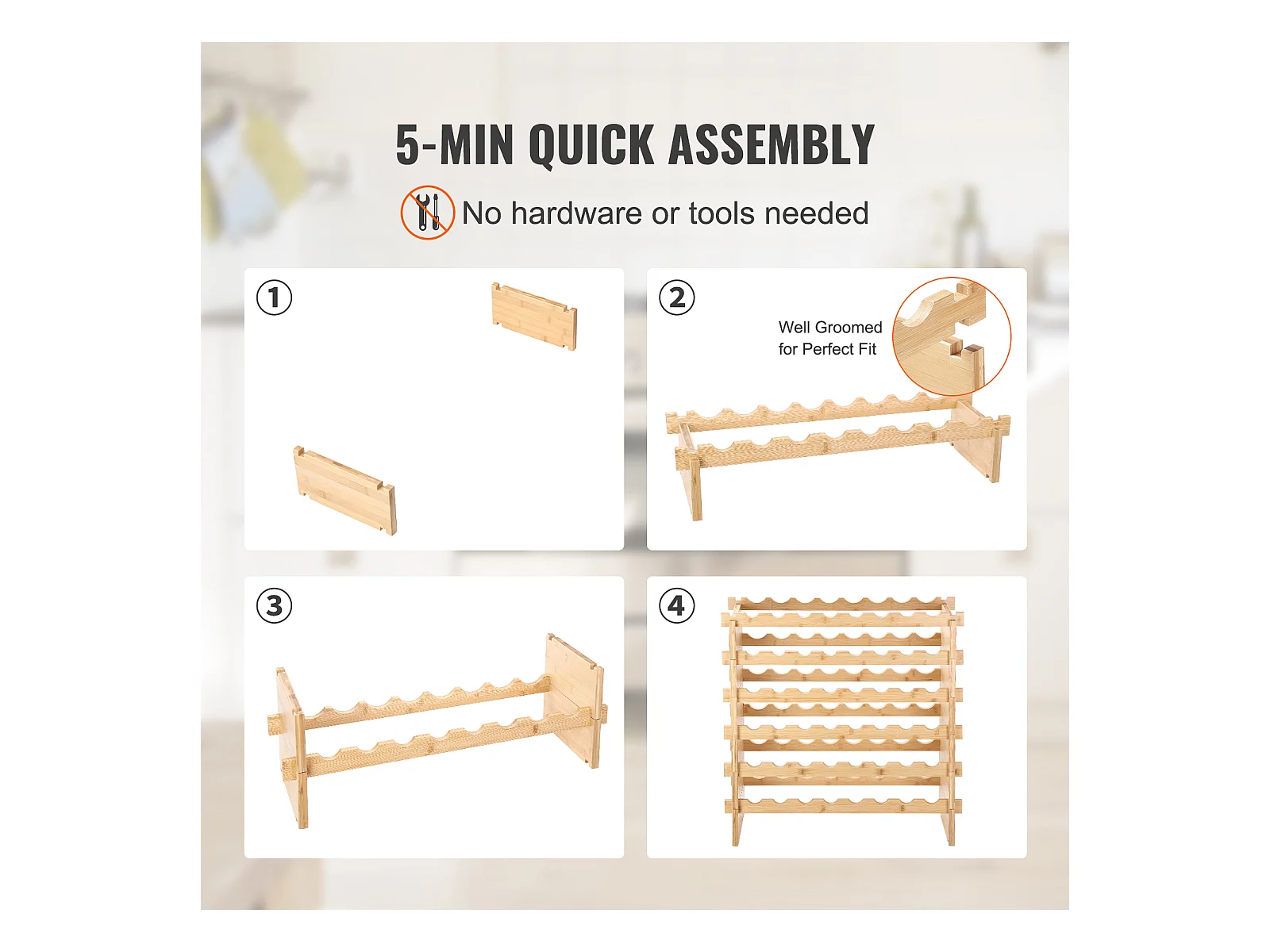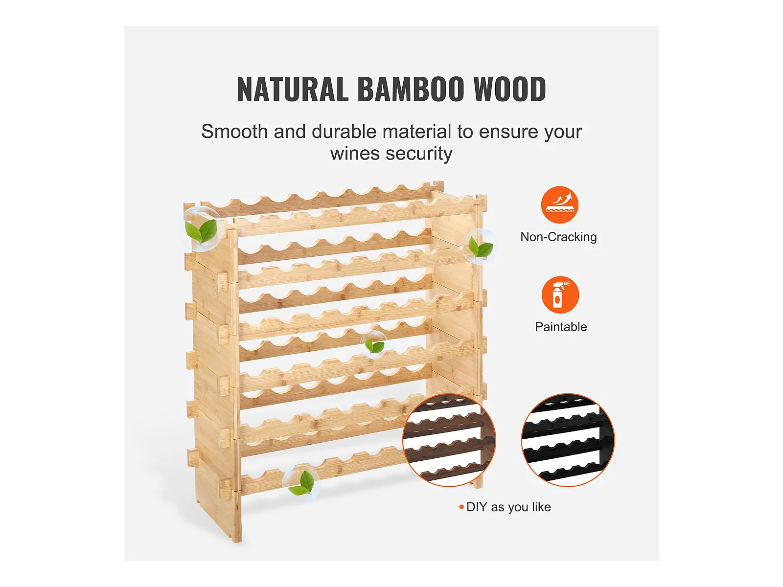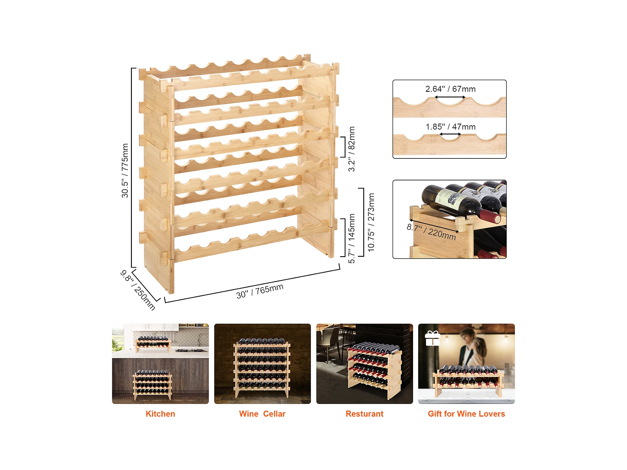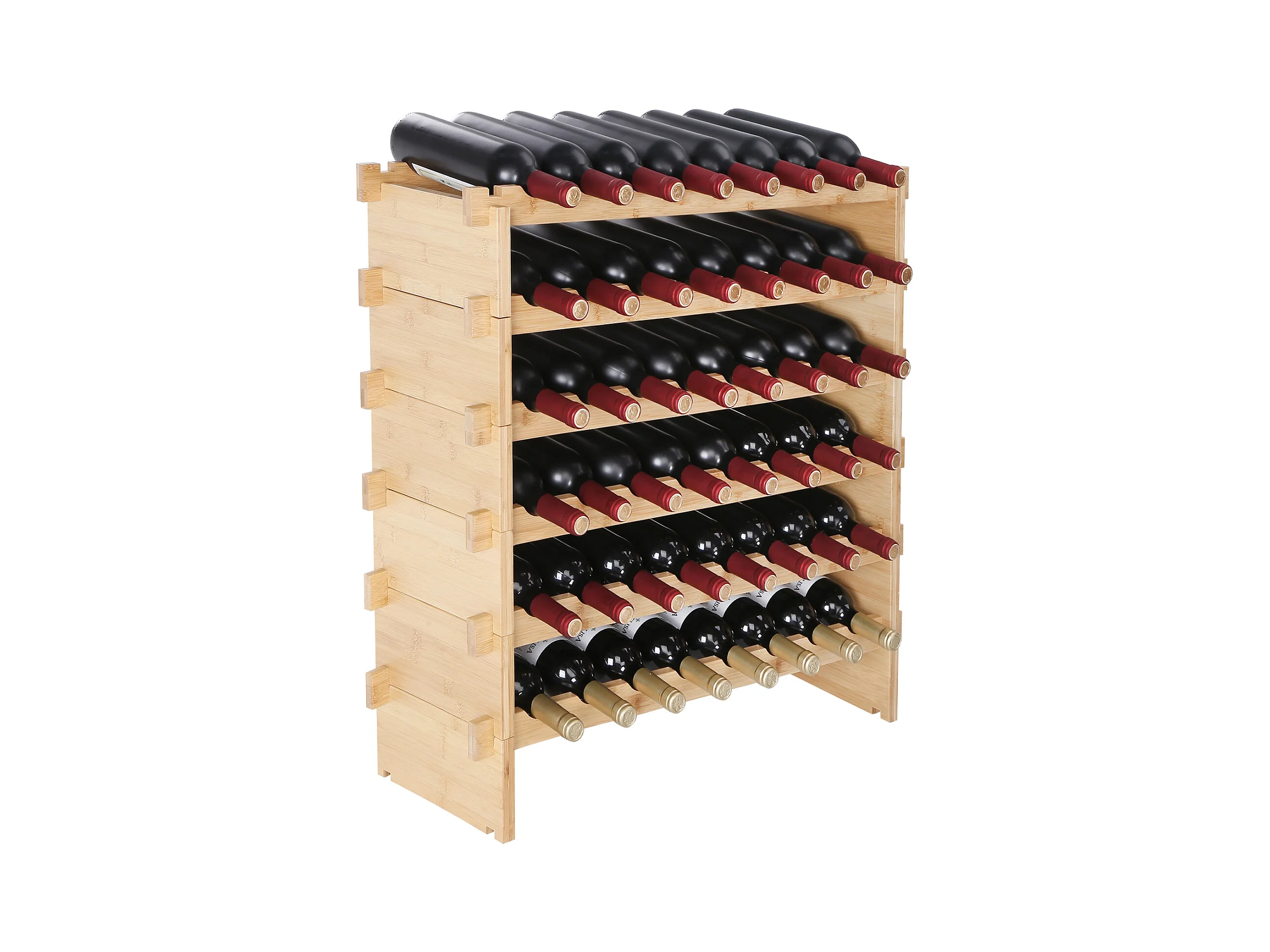 Casier à Vin SucceBuy Empilable Pour 48 Bouteilles, Étagère de Présentation en Bois de Bambou à 6 Niveaux