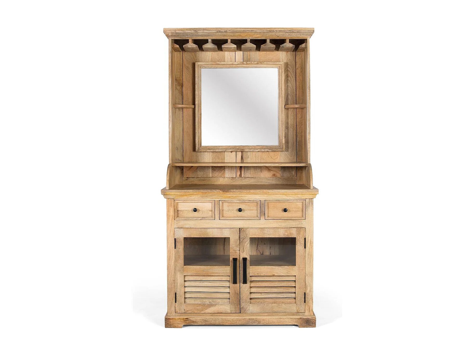 Casier à vin en bois de manguier avec miroir central