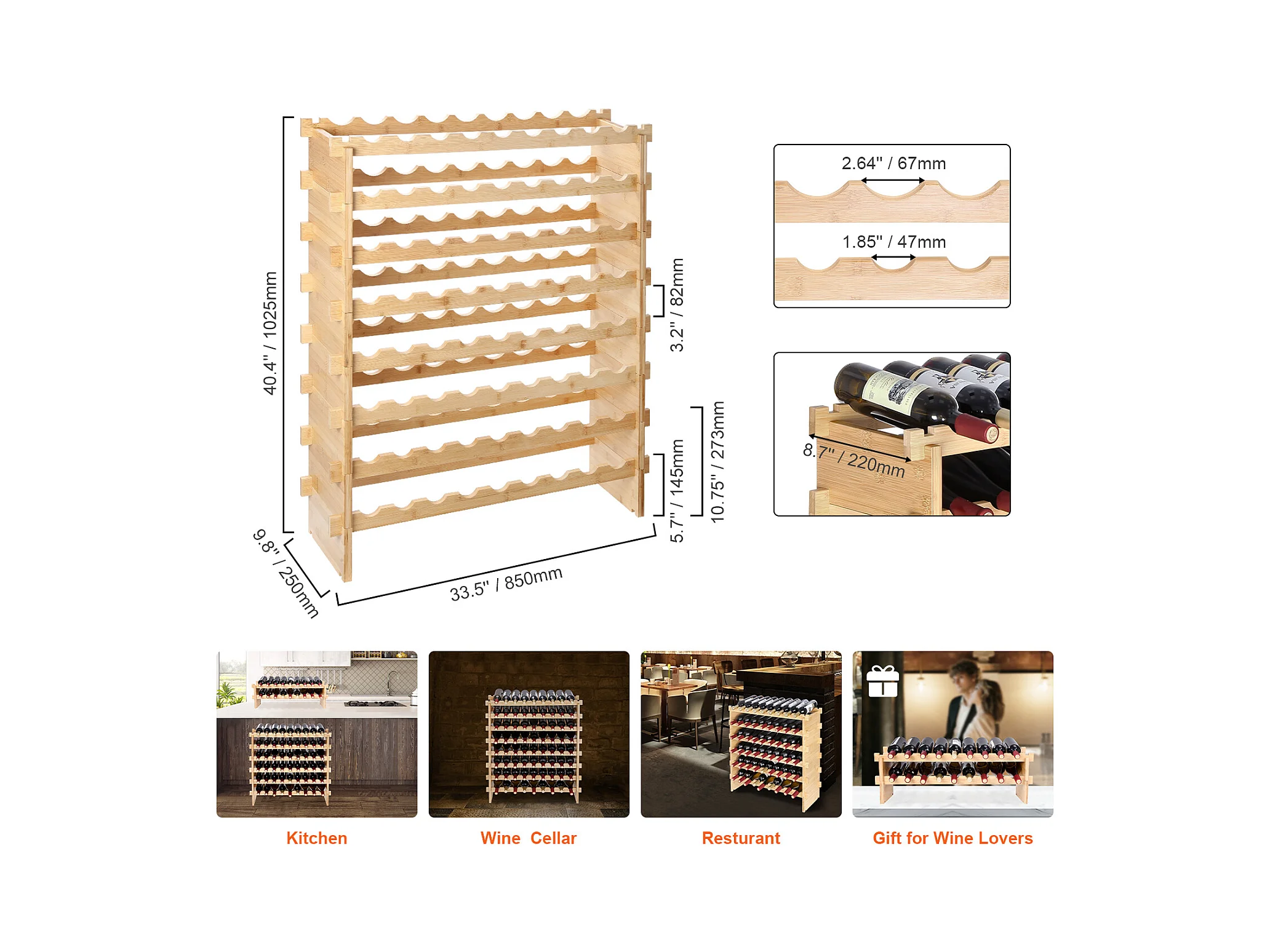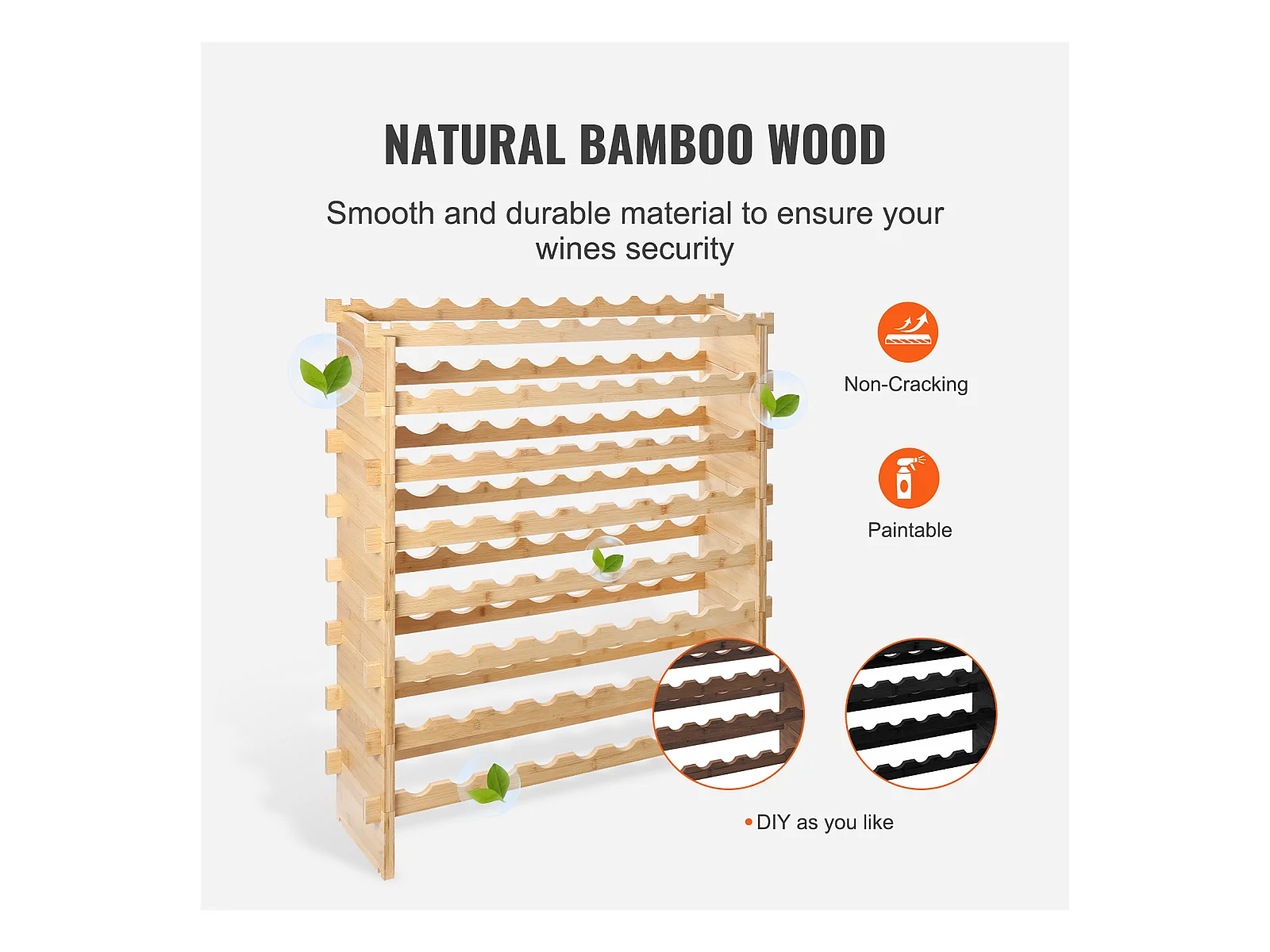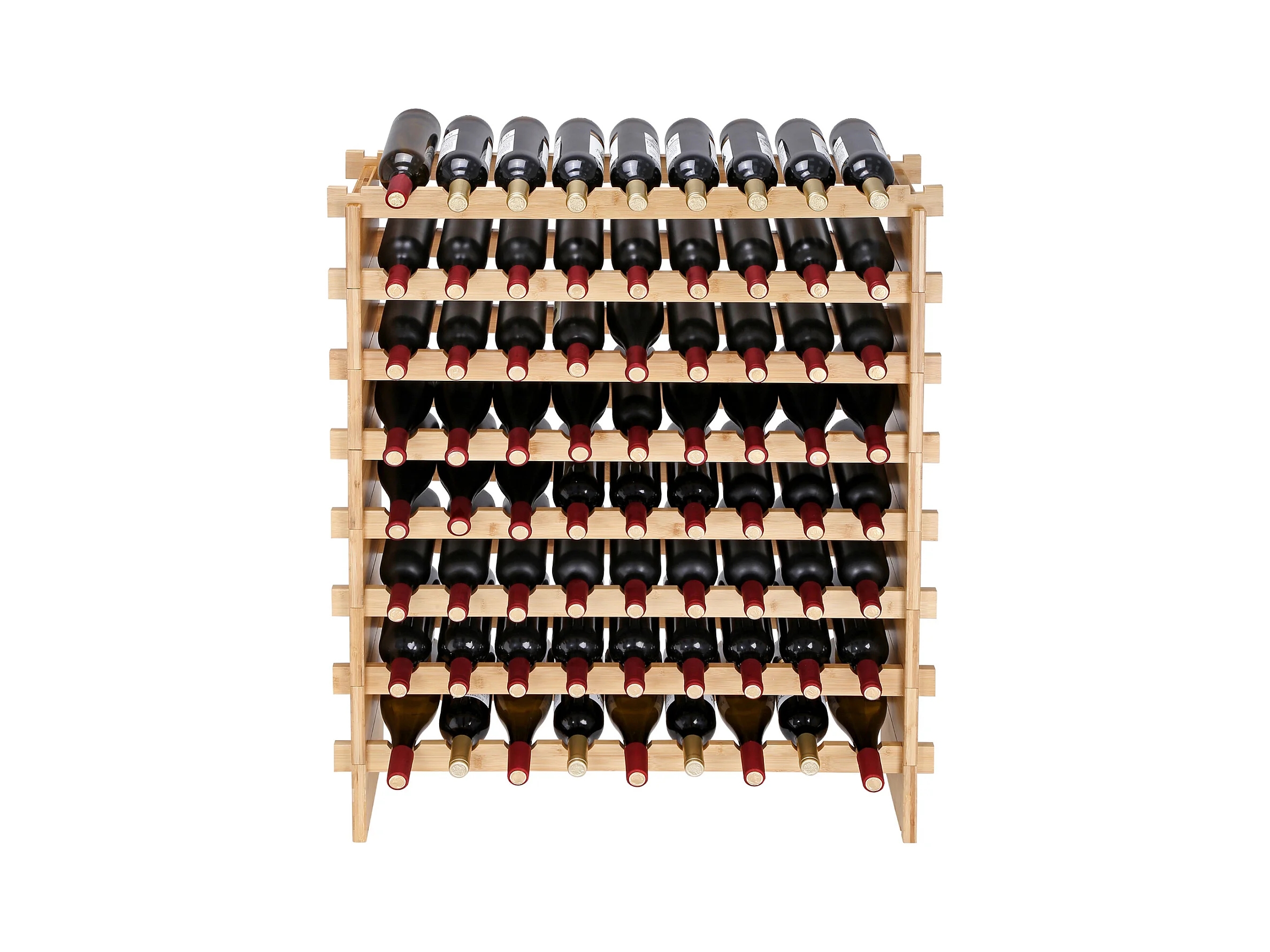 Casier à Vin SucceBuy en Bambou à 8 Niveaux Pour 72 Bouteilles, Présentoir Empilable et Modulaire