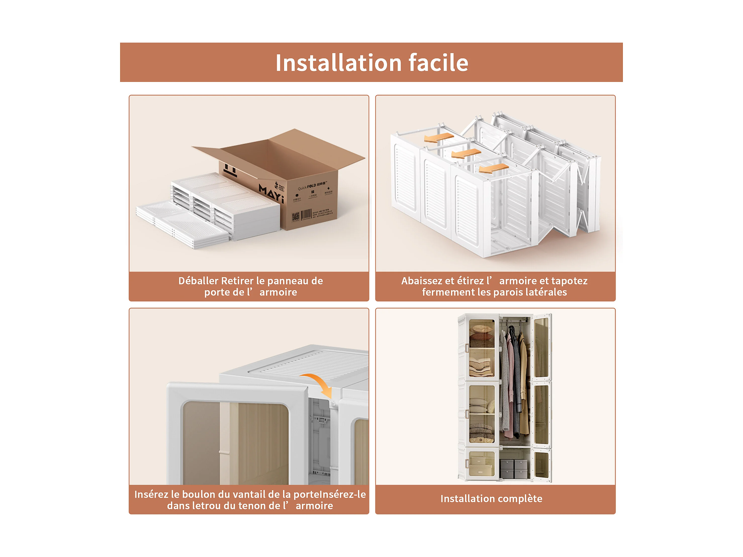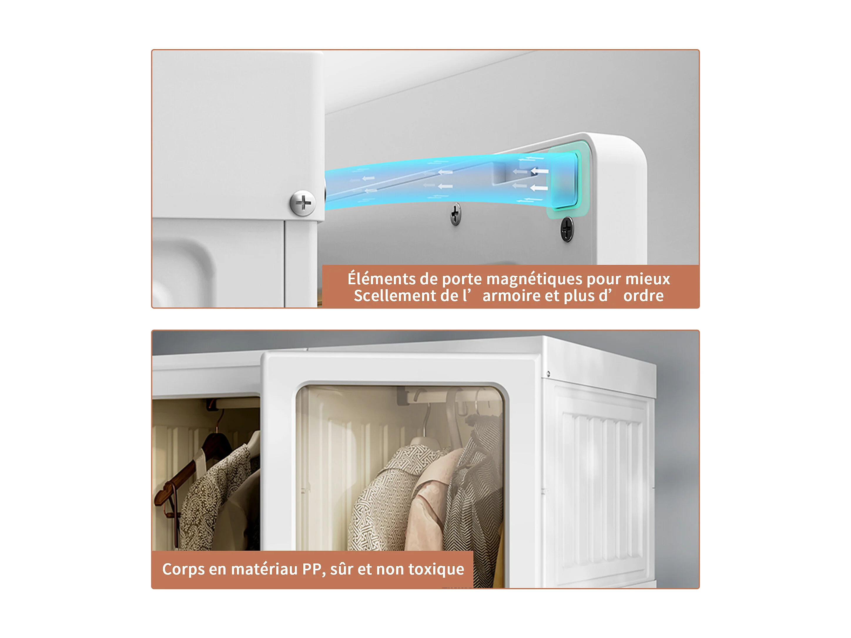 Casier gain de place, Armoire pliante,7 compartiments, 69*170cm, Matériau PP,blanc